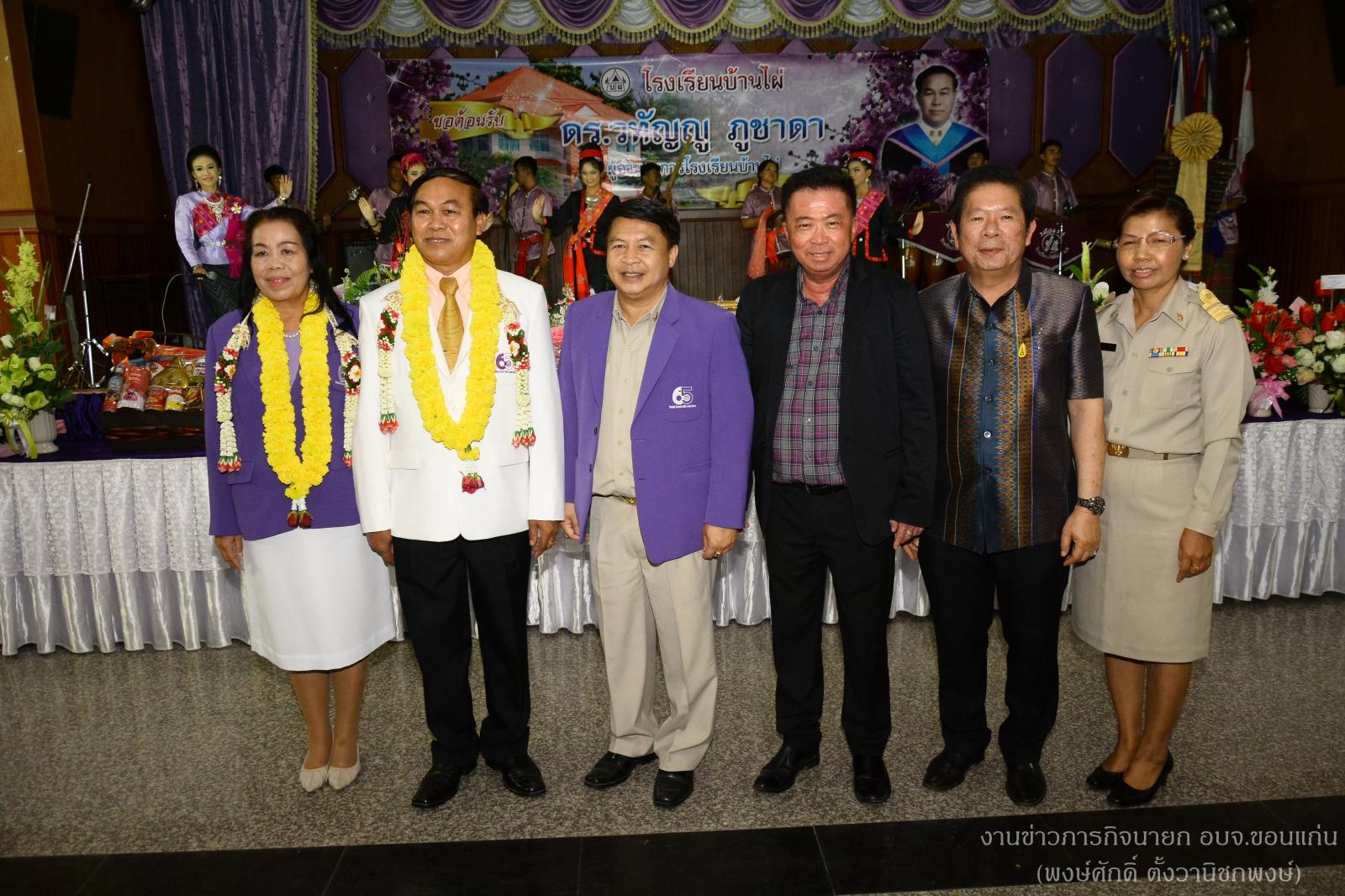 ดร.พงษ์ศักดิ์ ตั้งวานิชกพงษ์ นายกองค์การบริหารส่วนจังหวัดขอนแก่น มอบแจกันดอกไม้เพื่อแสดงความยินดีกับ ดร.วทัญญู ภูชาดา ในโอกาสย้ายมารับตำแหน่งผู้อำนวยการโรงเรียนบ้านไผ่ ณ โรงเรียนบ้านไผ่ อำเภอบ้านไผ่ จังหวัดขอนแก่น เมื่อวันที่ 14 ธันวาคม 2558
