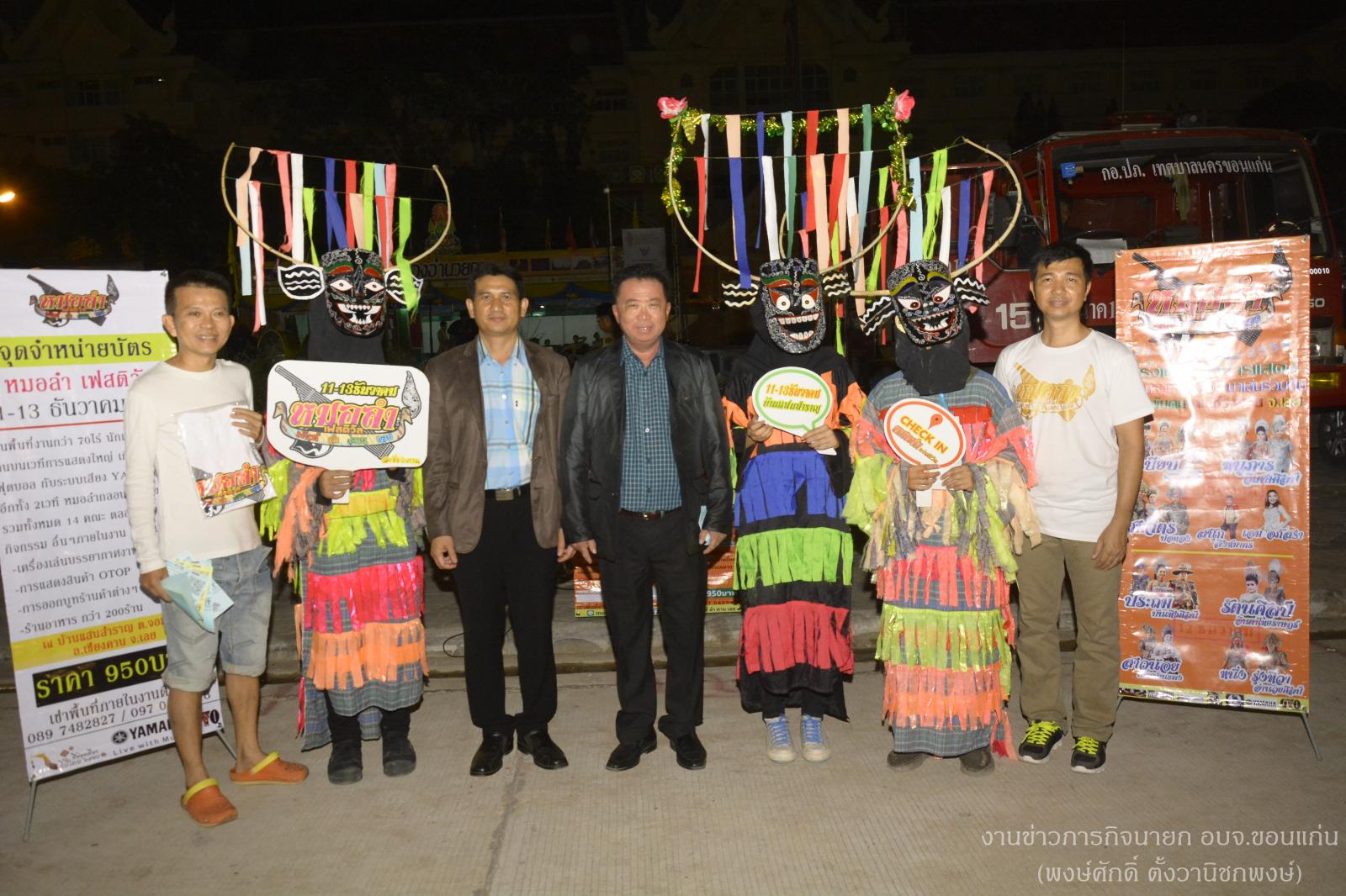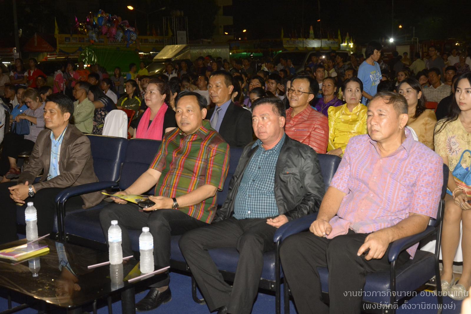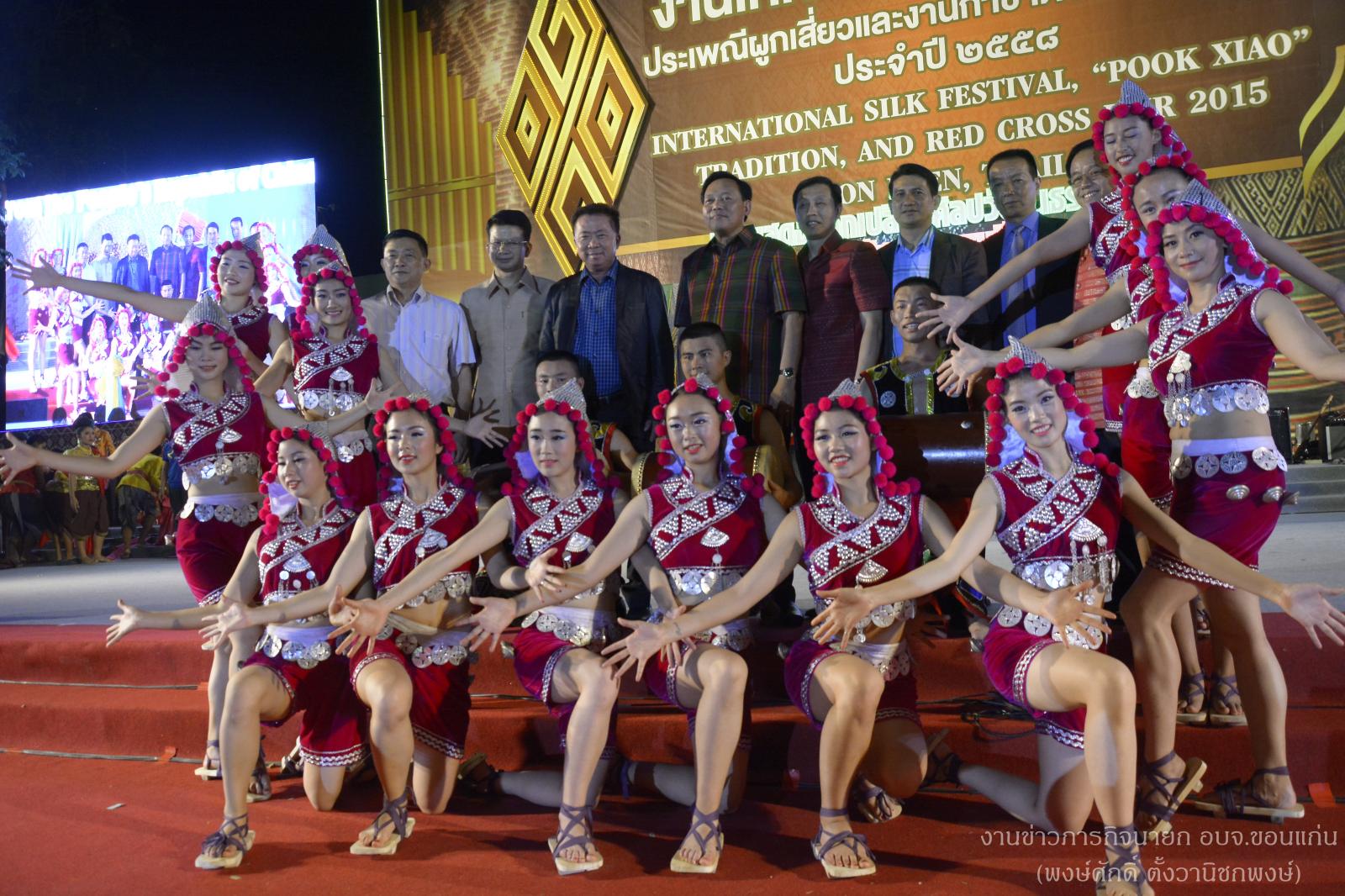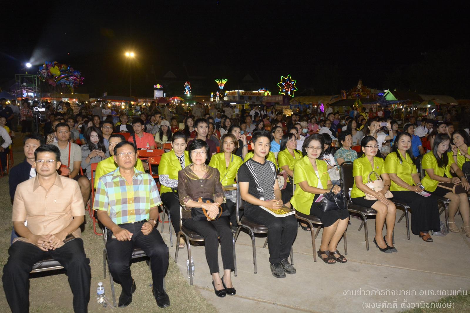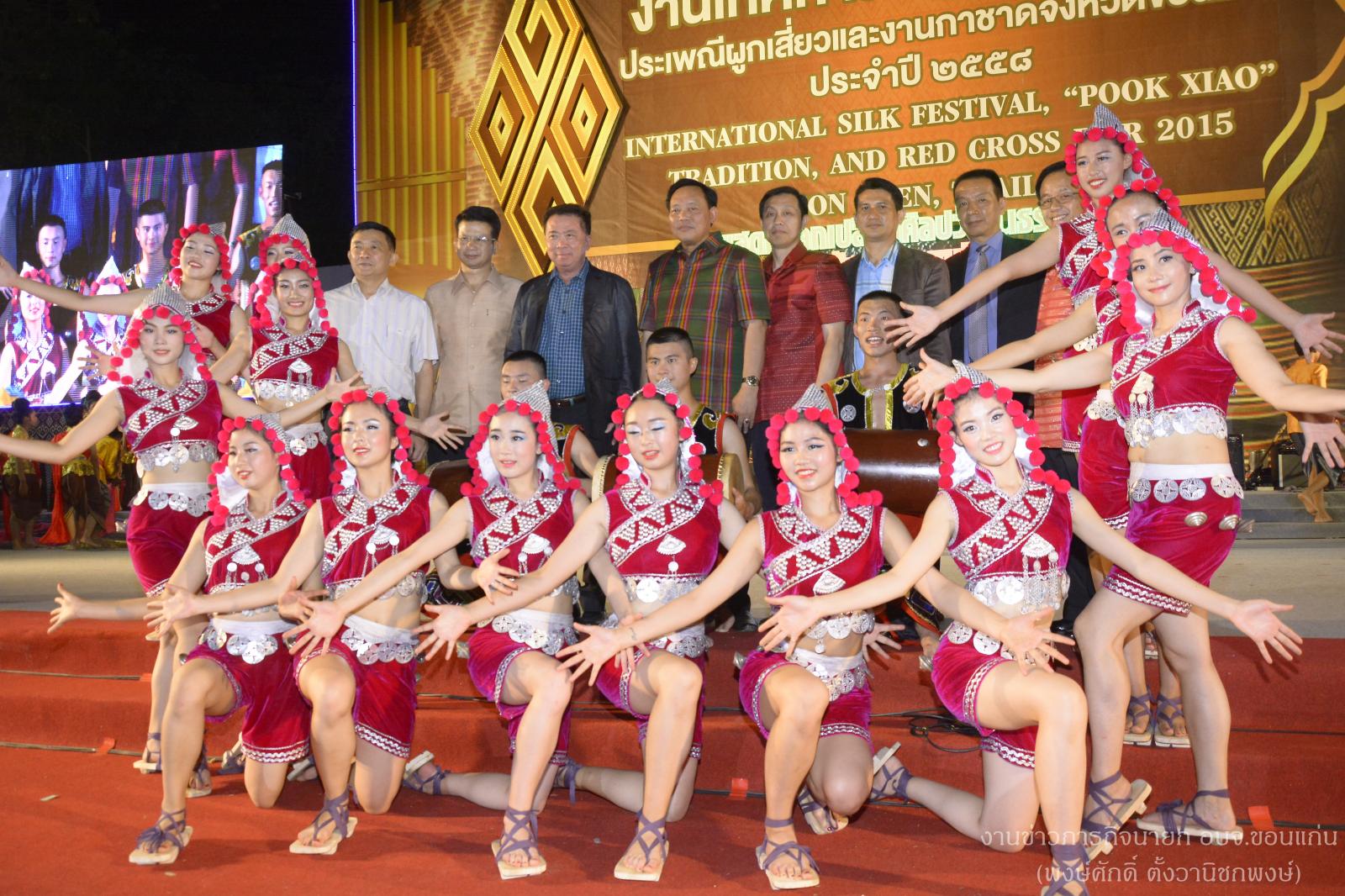 ดร.พงษ์ศักดิ์ ตั้งวานิชกพงษ์ นายกองค์การบริหารส่วนจังหวัดขอนแก่น พร้อมด้วย นายสิทธิกุล ภูคำวงศ์ รองนายกองค์การบริหารส่วนจังหวัดขอนแก่น ร่วมชมการแสดงศิลปวัฒนธรรม ในงานเทศกาลไหมนานาชาติ ประเพณีผูกเสี่ยวและงานกาชาดจังหวัดขอนแก่น ประจำปี 2558 ณ เวทีกลาง หน้าศาลากลางจังหวัดขอนแก่น เมื่อวันที่ 30 พฤศจิกายน 2558
