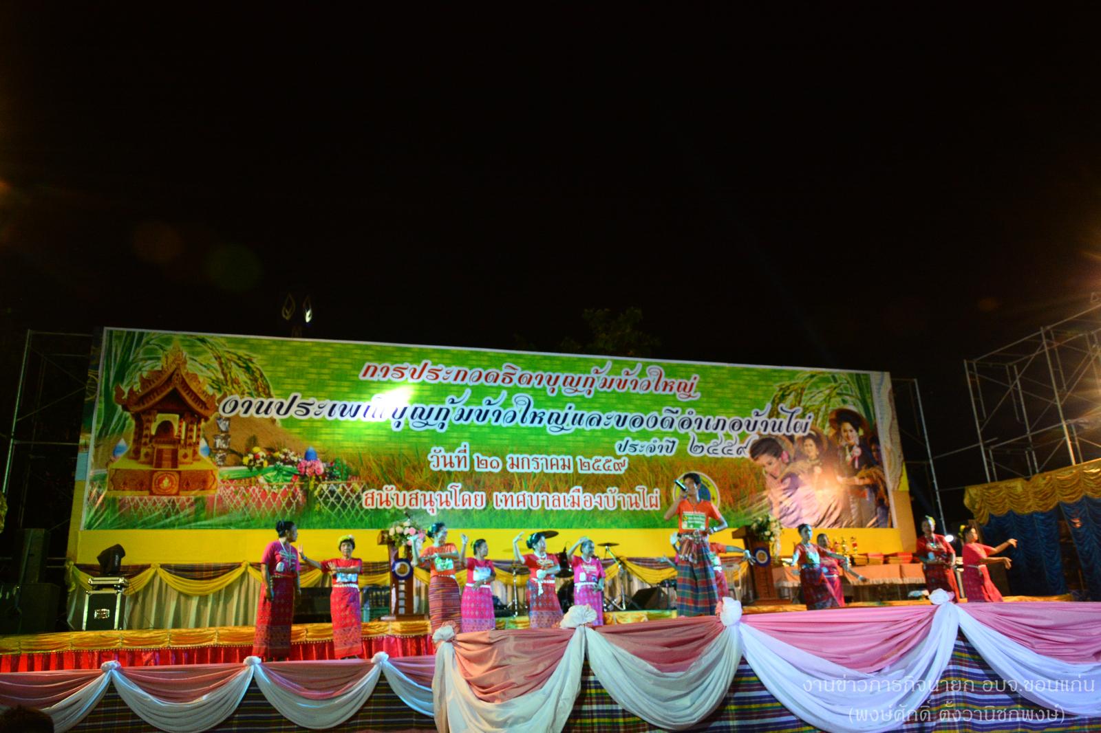 เมื่อวันที่ 21 มกราคม 2559 เวลา 18.00 น. ดร.พงษ์ศักดิ์ ตั้งวานิชกพงษ์ นายกองค์การบริหารส่วนจังหวัดขอนแก่น เป็นประธานพิธีเปิดงานพาแลงและการประกวดธิดาบุญกุ้มข้าวใหญ่ในงานประเพณี "บุญกุ้มข้าวใหญ่ และของดีอำเภอบ้านไผ่ ประจำปี 2559 " ณ บริเวณหน้าที่ว่าการอำเภอบ้านไผ่ พร้อมด้วย นายเดชคำรณ สิงคลีบุตร และ นายองอาจ ฉัตรชัยพลรัตน์ ส.อบจ.ขอนแก่น เขต อ.บ้านไผ่ โดยมี นายจารึก เหล่าประเสริฐ นายอำเภอบ้านไผ่ กล่าวรายงาน เพื่อเป็นการสืบสานอนุรักษ์เผยแพร่ขนบธรรมประเพณีวัฒนธรรม “ ไทอีสาน” ตามฮีตสิบสอง ครองสิบสี่ เป็นการส่งเสริมการท่องเที่ยวและสินค้าอันลือชื่อของอำเภอบ้านไผ่ ตลอดจนเผยแพร่กิจกรรมผลิตผลทางการเกษตร ปศุสัตว์ ผลิตภัณฑ์กลุ่มแม่บ้าน และการแสดงของชาวอำเภอบ้านไผ่