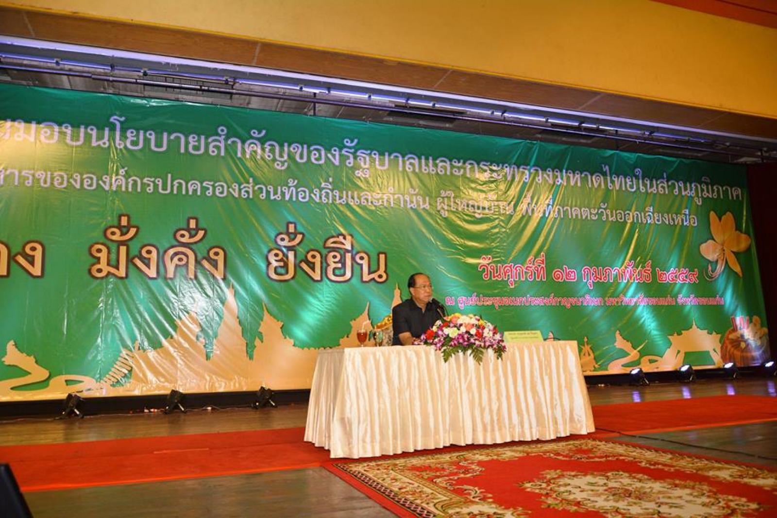 ดร.พงษ์ศักดิ์ ตั้งวานิชกพงษ์ นายกองค์การบริหารส่วนจังหวัดขอนแก่น พร้อมด้วยคณะผู้บริหาร ข้าราชการ อบจ.ขอนแก่น ร่วมต้อนรับและรับฟัง นโยบายสำคัญของรัฐบาลและกระทรวงมหาดไทย จาก พล.อ.อนุพงษ์ เผ่าจินดา รัฐมนตรีว่าการกระทรวงมหาดไทย (มท.1) โดยมีนายกำธร ถาวรสถิตย์ ผู้ว่าราชการจังหวัดขอนแก่น นายอำเภอ ข้าราชการ องค์กรปกครองส่วนท้องถิ่น ในพื้นที่จังหวัดขอนแก่นต้อนรับ เมื่อวันที่ 12 กุมภาพันธ์ 2559 ณ ศูนย์ประชุมเอนกประสงค์กาญจนาภิเษก มหาวิทยาลัยขอนแก่น