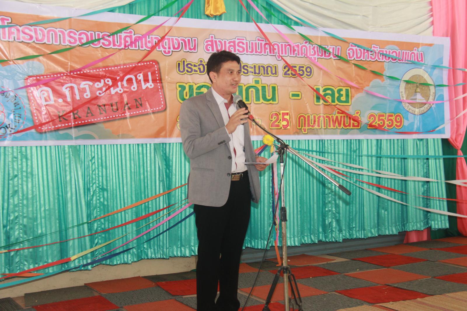 เมื่อวันที่ ๒๕ กุมภาพันธ์ ๒๕๕๙ นายก อบจ.ขอนแก่น ดร.พงษ์ศักดิ์ ตั้งวานิชกพงษ์ มอบหมายให้ รองนายก อบจ.ขอนแก่น นายสิทธิกุล ภูคำวงศ์ เป็นประธานในพิธีมอบวุฒิบัตรโครงการอบรม ศึกษา ดูงาน ส่งเสริมมัคคุเทศก์ชุมชนจังหวัดขอนแก่น ประจำปีงบประมาณ ๒๕๕๙ ในโอกาสนี้มี ส.อบจ.ขอนแก่น อ.กระนวน เขต ๑ นางกรรณิการ์ สืบสารคาม พร้อมด้วย ผอ.โรงเรียนหนองโนประชาสรรค์ นายอำนาจ โพธิ์ศรี เข้าร่วมเป็นเกียรติในพิธี การจัดฝึกอบรมในครั้งนี้มีวัตถุประสงค์เพื่อส่งเสริม และพัฒนาบุคลากรให้เป็นมัคคุเทศก์ชุมชน มีความรู้ความสามารถ ความเข้าใจ อันเป็นกลไกสำคัญ ที่จะพัฒนาและส่งเสริมการท่องเที่ยวอย่างถูกต้อง พร้อมทั้งสามารถประชาสัมพันธ์ เผยแพร่ประวัติ ความเป็นมา วัฒนธรรม ประเพณี ให้นักท่องเที่ยวได้รับข้อมูลอย่างเหมาะสม จัดอบรมขึ้นในระหว่าง วันที่ ๒๐ – ๒๕ กุมภาพันธ์ ๒๕๕๙ ณ หอประชุมโรงเรียนหนองโนประชาสรรค์ ต.หนองโน อ.กระนวน จ.ขอนแก่น