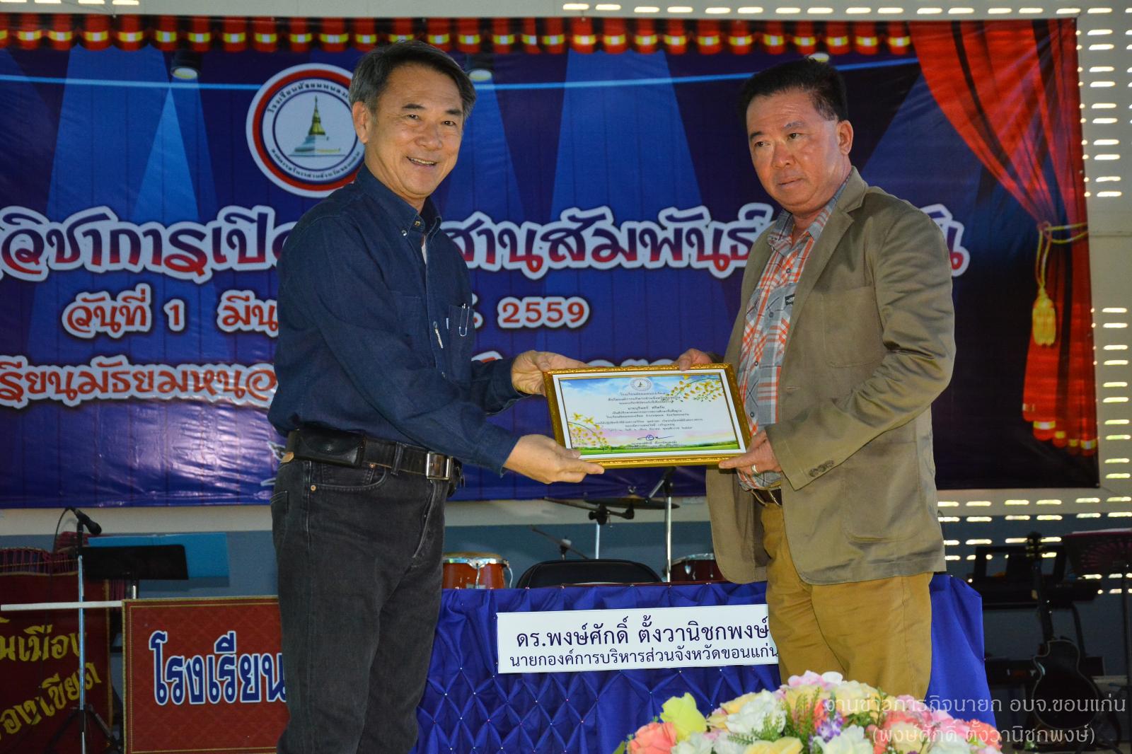 เมื่อวันที่ 1 มีนาคม 2559 ดร.พงษ์ศักดิ์ ตั้งวานิชกพงษ์ นายกองค์การบริหารส่วนจังหวัดขอนแก่น เป็นประธานเปิดงานนิทรรศการวิชาการ เปิดบ้านสานสัมพันธ์สู่ชุมชน ประจำปี 2559 ซึ่งจัดขึ้นที่โรงเรียนมัธยมหนองเขียด อำเภอชุมแพ จังหวัดขอนแก่น เพื่อแสดงผลงานของโรงเรียน ครูและบุคลากรทางการศึกษาและผลงานนักเรียน โดยมีนายบุรินทร์ ศรีตรัย ส.อบจ.ขอนแก่น เขต อ.ชุมแพ คณะครู ผู้ปกครองนักเรียนเข้าร่วมในพิธีเปิดจำนวนมาก หลังจากนั้นก็ได้มอบเกียรติบัตร ให้กับตัวแทนจากโรงเรียนต่างๆ ที่มาร่วมงานก่อนจะเดินเยี่ยมชมบูธแสดงนิทรรศการภายในงาน และเปิดโรงเรียนสร้างชาวนามืออาชีพ โรงเรียนมัธยมหนองเขียด