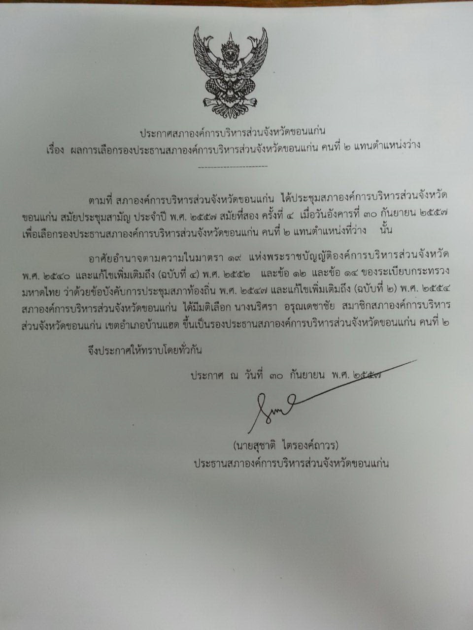 ผลการเลือกรองประธานสภาองค์การบริหารส่วนจังหวัดขอนแก่น คนที่ 2 แทนตำแหน่งว่าง