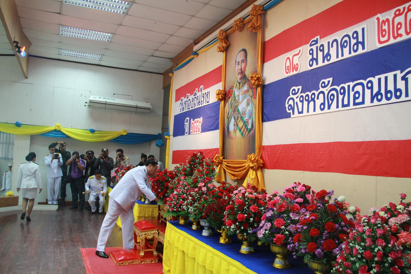 เมื่อวันที่ ๑๘ มีนาคม ๒๕๕๙ นายก อบจ.ขอนแก่น ดร.พงษ์ศักดิ์ ตั้งวานิชกพงษ์ มอบหมายให้ ปลัด อบจ.ขอนแก่น นางพัฒนาวดี จันทร์นวล พร้อมด้วย ส.อบจ.ขอนแก่น อ.เมือง เขต ๑ นางปณิดา แก้วขัน ,รองปลัด อบจ.ขอนแก่น นางสาวนงลักษณ์ รัตนจันทร์ ,รองปลัด อบจ.ขอนแก่น นายประสิทธิ์ อุดมธนะธีระ หัวหน้าส่วนราชการ ข้าราชการ อบจ.ขอนแก่น เข้าร่วมงานพิธีถวายราชสักการะพระบาทสมเด็จพระจุลจอมเกล้าเจ้าอยู่หัว เนื่องใน “วันท้องถิ่นไทย ปี ๒๕๕๙” เพื่อน้อมรำลึกถึงพระมหากรุณาธิคุณแห่งพระบาทสมเด็จพระจุลจอมเกล้าเจ้าอยู่หัว ที่ได้ทรงมีพระบรมราชโองการ ให้ยกฐานะตำบลท่าฉลอมขึ้นเป็นสุขาภิบาลท่าฉลอม เมื่อวันที่ ๑๘ มีนาคม ๒๔๔๘ เป็นจุดเริ่มต้นของการกระจายอำนาจการปกครองให้แก่ประชาชน ถือเป็นการกำเนิดของการปกครองส่วนท้องถิ่นเป็นครั้งแรกในประเทศไทย โดยมี ผู้ว่าราชการจังหวัดขอนแก่น นายกำธร ถาวรสถิตย์ เป็นประธาน ณ ศาลาประชาคมจังหวัดขอนแก่น อ.เมืองขอนแก่น จ.ขอนแก่น