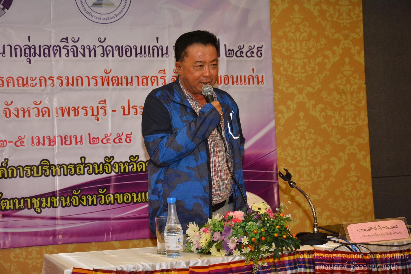 ดร.พงษ์ศักดิ์ ตั้งวานิชกงษ์ นายกองค์การบริหารส่วนจังหวัดขอนแก่น ได้ให้เกียรติเป็นประธานเปิดโครงการเพิ่มศักยภาพการพัฒนากลุ่มสตรี จังหวัดขอนแก่น ประจำปี 2559 กิจกรรมประชุมเชิงปฏิบัติการคณะกรรมการพัฒนาสตรี จังหวัดขอนแก่น และทัศนศึกษาดูงานจังหวัดเพชรบุรี – ประจวบคีรีขันธ์ ณ โรงแรมมันตราวารี ขอนแก่น เมื่อวันที่ 2 เมษายน 2559