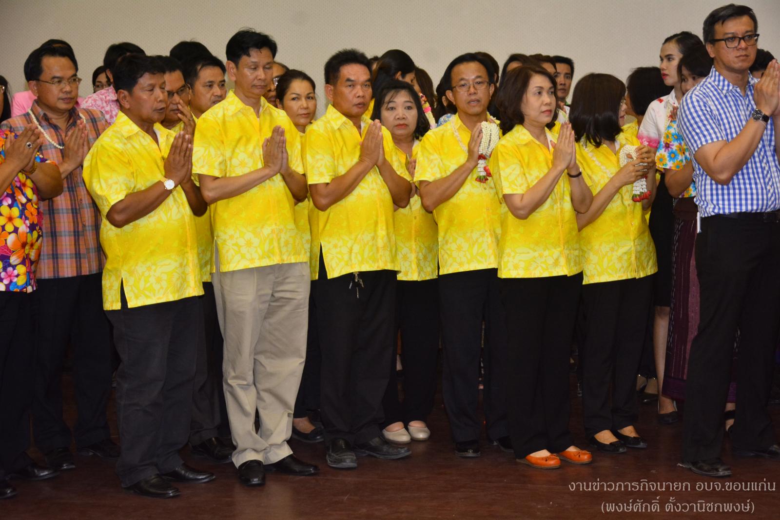 ดร.พงษ์ศักดิ์ ตั้งวานิชกพงษ์ นายกองค์การบริหารส่วนจังหวัดขอนแก่น นายสิทธิกุล ภูคำวงศ์ รองนายก อบจ.ขอนแก่น พร้อมด้วยคณะผู้บริหาร ข้าราชการองค์การบริหารส่วนจังหวัดขอนแก่น ร่วมรดน้ำดำหัวขอพรจาก นายกำธร ถาวรสถิตย์ ผู้ว่าราชการจังหวัดขอนแก่น และนางพิมพ์วิมล ถาวรสถิตย์ นายกเหล่ากาชาดขอนแก่น เพื่อความเป็นสิริมงคลเนื่องในวันสงกรานต์ ประจำปี 2559 เมื่อวันที่ 11 เมษายน 2559 ณ ห้องประชุมใหญ่ศาลากลางจังหวัดขอนแก่น