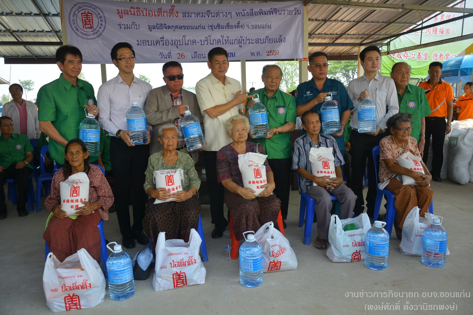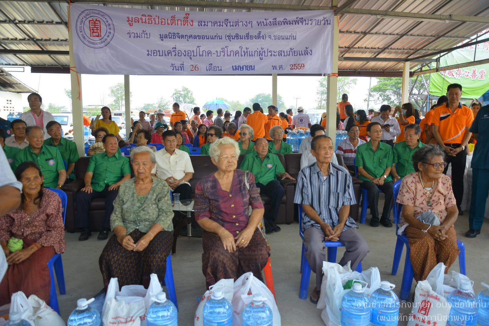 ดร.พงษ์ศักดิ์ ตั้งวานิชกพงษ์ นายกองค์การบริหารส่วนจังหวัดขอนแก่น เป็นประธานในพิธีมอบเครื่องอุปโภค – บริโภคให้แก่ผู้ประสบภัยแล้ง ณ ก.ม.14 ติดถนนมิตรภาพ บริเวณที่จะสร้างอุทยานจิตกุศลขอนแก่น ตำบลท่าพระ อำเภอเมือง จังหวัดขอนแก่น โดยมูลนิธิป่อเต็กติ๊ง สมาคมจีนต่างๆ หนังสือพิมพ์จีนรายวัน ร่วมกับ มูลนิธิจิตกุศลขอนแก่น (ชุนซิมเซี่ยนตึ๊ก) จังหวัดขอนแก่น จัดขึ้น เพื่อช่วยเหลือราษฎรผู้ประสพภัยแล้งในเขตพื้นที่ตำบลท่าพระ จำนวน 1,000 ครัวเรือน เมื่อ 26 เมษายน 2559