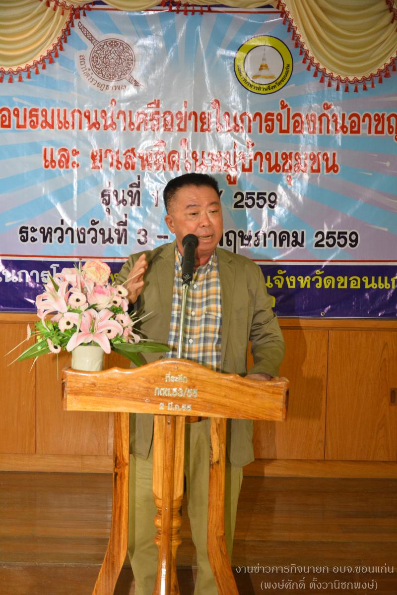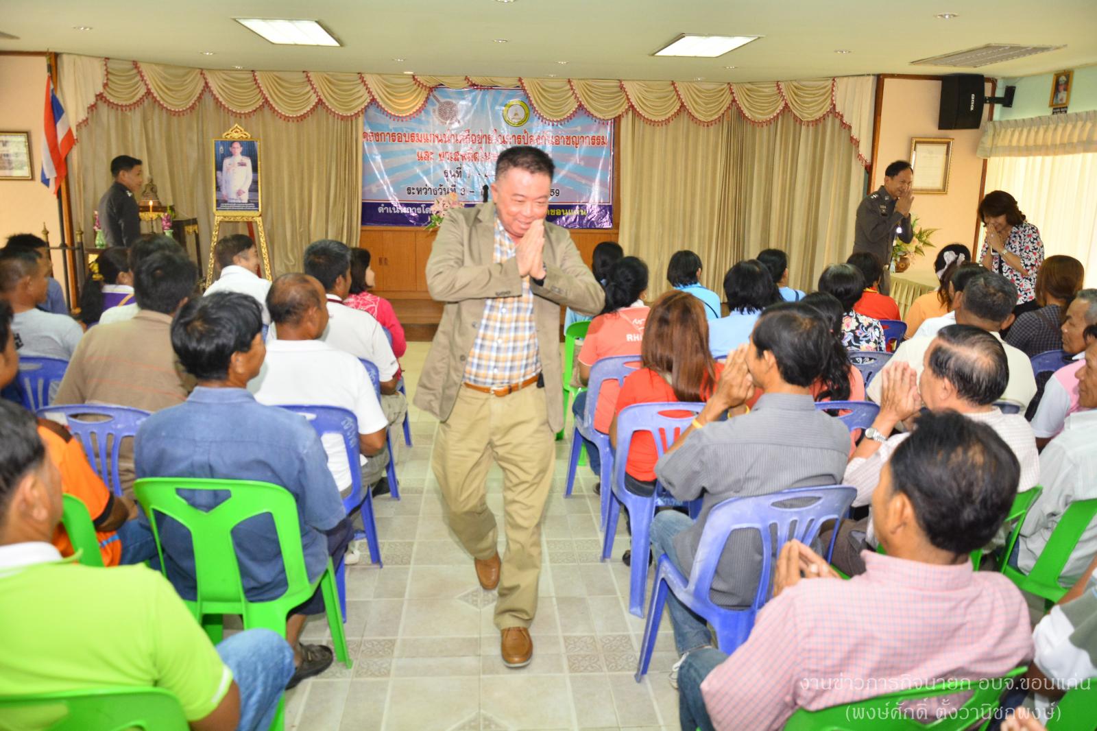 ดร.พงษ์ศักดิ์ ตั้งวานิชกพงษ์ นายกองค์การบริหารส่วนจังหวัดขอนแก่น เป็นประธานเปิดการอบรมโครงการอบรมแกนนำเครือข่ายในการป้องกันอาชญากรรม และยาเสพติดในหมู่บ้านชุมชน รุ่นที่ 1 ประจำปี 2559 ณ  สถานีตำรวจภูธรพล อ.พล จ.ขอนแก่น โดยมีนายคงฤทธิ์ อัศวพัฒนากูล  ส.อบจ.ขอนแก่น  เขต อ.พล เข้าร่วมในพิธี