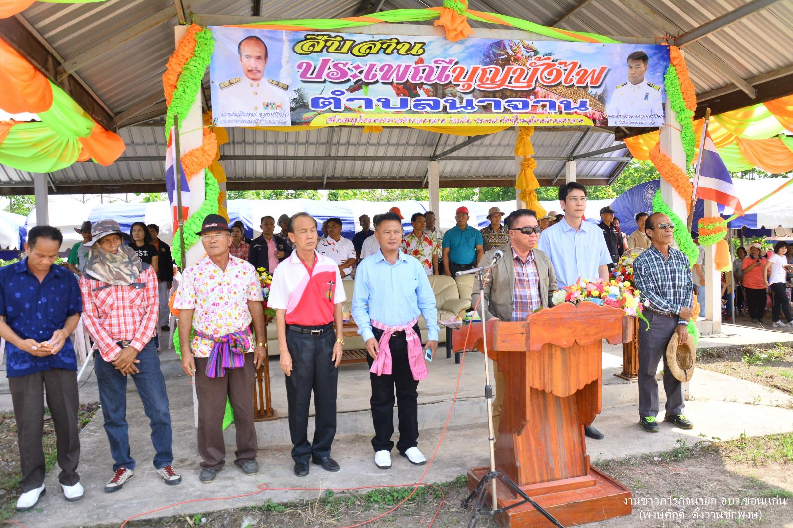 ดร.พงษ์ศักดิ์ ตั้งวานิชกพงษ์ นายกองค์การบริหารส่วนจังหวัดขอนแก่น เป็นประธานเปิดงานประเพณีสืบสานบุญบั้งไฟตำบลนาจาน ประจำปี 2559 พร้อมด้วย นายจารุพรรณ ภูวสันติ สมาชิกสภาองค์การบริหารส่วนจังหวัดขอนแก่น เขต อ.สีชมพู และนายอรรถพันธุ์ สงวนเสริมศรี นายอำเภอสีชมพู ณ อ่างเก็บน้ำฝายโคกบ้านนาเจริญ ตำบลนาจาน อำเภอสีชมพู จังหวัดขอนแก่น โดยมี นายบุญโฮม บุญแดนไพร กำนันตำบลนาจาน กล่าวรายงาน เมื่อวันที่ 28 พฤษภาคม 2559