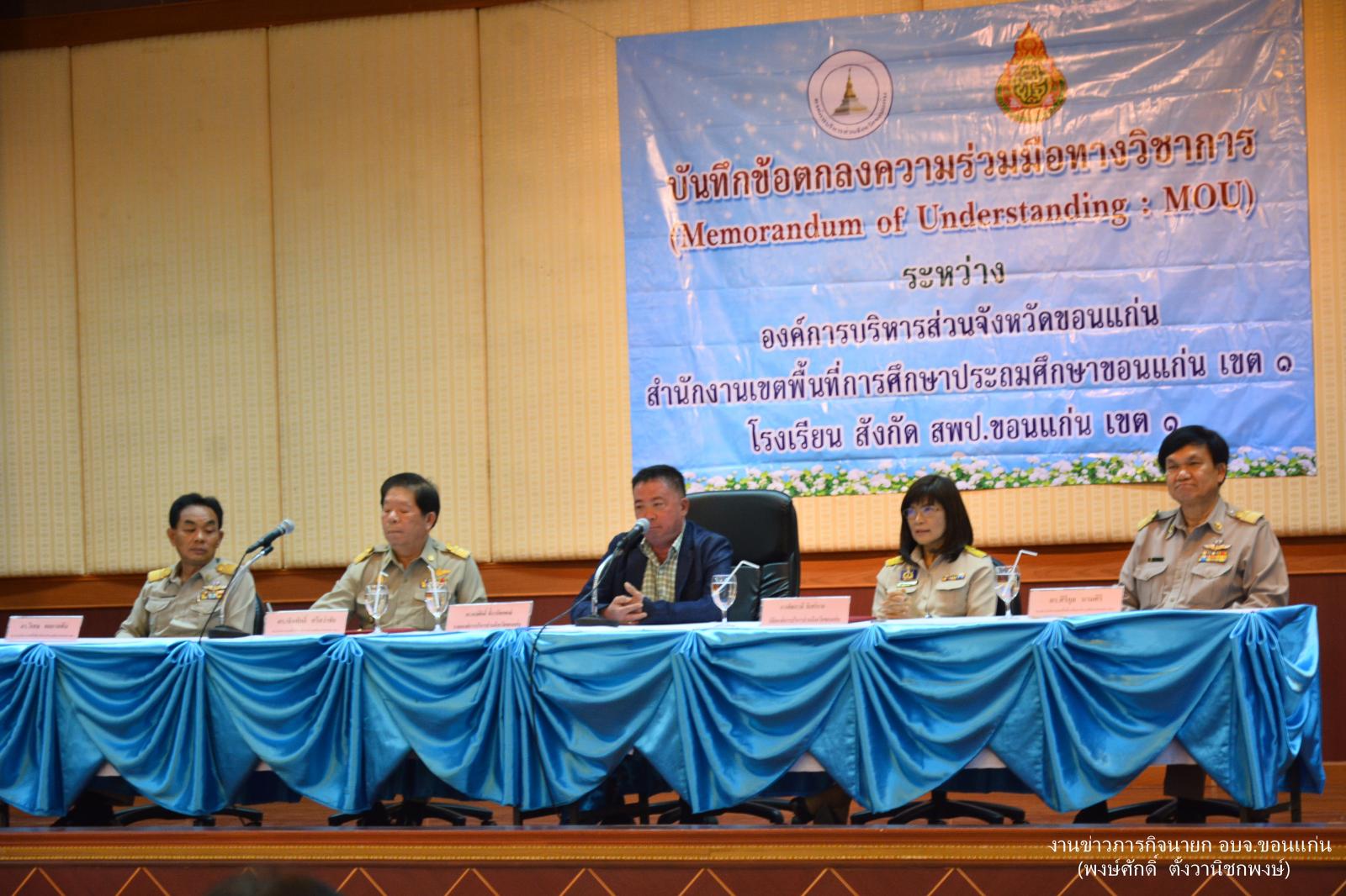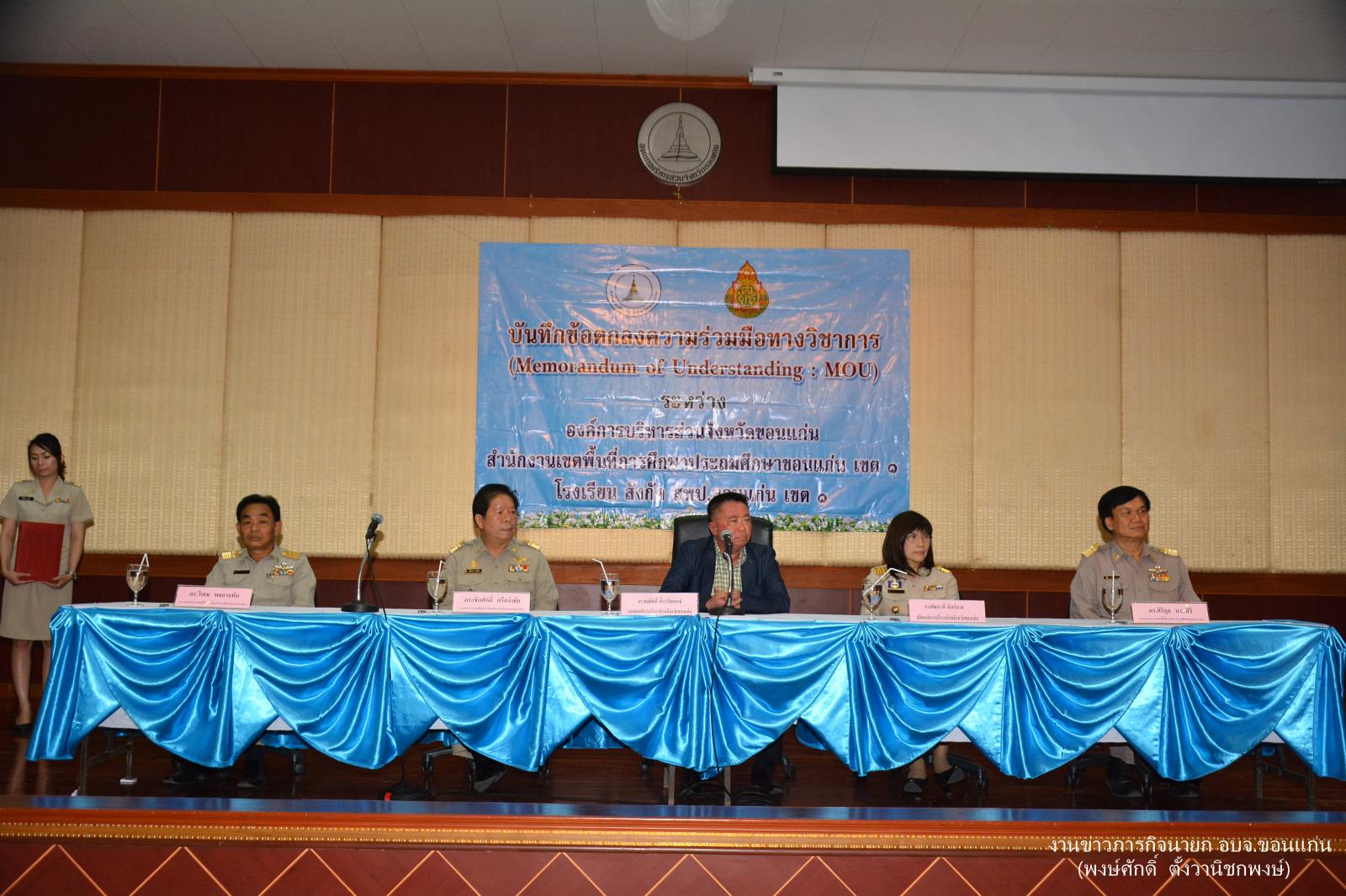 พิธีลงนามบันทึกข้อตกลงความร่วมมือทางวิชาการ (Memorandum of Understanding:MOU) ระหว่างองค์การบริหารส่วนจังหวัดขอนแก่น สำนักงานเขตพื้นที่การศึกษาประถมศึกษาขอนแก่น เขต 1 และโรงเรียนในสังกัด สพป.ขอนแก่น เขต 1 เมื่อ วันที่ 6 มิถุนายน 2559 ณ ห้องประชุมองค์การบริหารส่วนจังหวัดขอนแก่น..