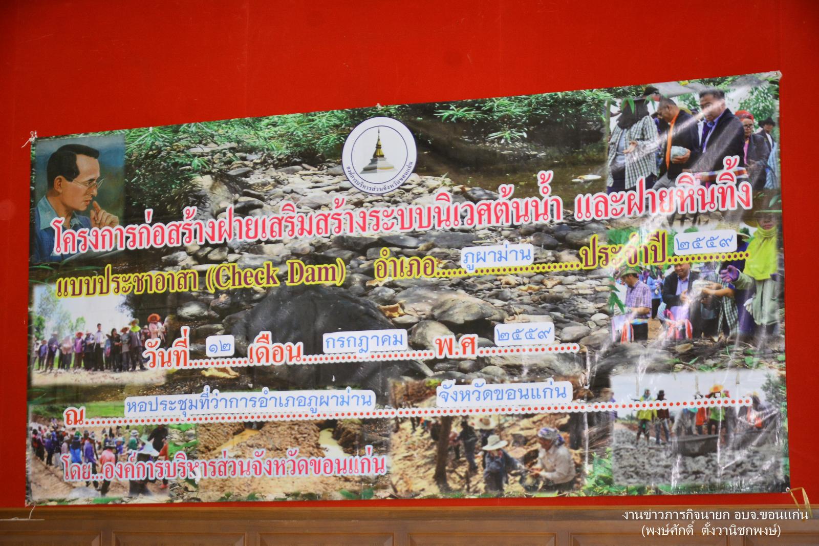 ดร.พงษ์ศักดิ์ ตั้งวานิชกพงษ์ นายกองค์การบริหารส่วนจังหวัดขอนแก่น เป็นประธานพิธีเปิดโครงการก่อสร้างฝายเสริมสร้างระบบนิเวศต้นน้ำและฝายหินทิ้ง แบบประชาอาสา (Check Dam) อำเภอภูผาม่าน ประจำปี 2559 โดยมี นายประสิทธิ์ ทองแท่งไทย ส.อบจ.ขอนแก่น เขต อ.ภูผาม่าน คณะผู้บริหาร สมาชิกสภา อบต. ผู้นำท้องถิ่น กำนัน ผู้ใหญ่บ้าน และชาวอำเภอภูผาม่าน ให้การต้อนรับอย่างอบอุ่น เมื่อ 12 กรกฎาคม 2559