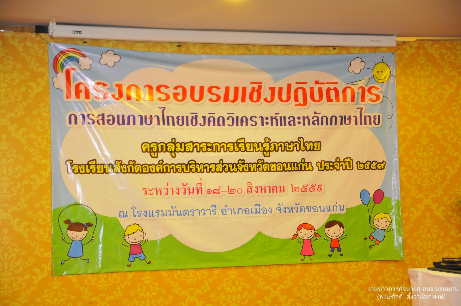 ดร.พงษ์ศักดิ์ ตั้งวานิชกพงษ์ นายกองค์การบริหารส่วนจังหวัดขอนแก่น เป็นประธานเปิดโครงการอบรมเชิงปฏิบัติการการสอนภาษาไทยเชิงคิดวิเคราะห์ และหลักภาษาไทย ครูกลุ่มสาระการเรียนรู้ภาษาไทย โรงเรียนสังกัดองค์การบริหารส่วนจังหวัดขอนแก่น ประจำปี 2559 ณ โรงแรมมันตราวารี อำเภอเมือง จังหวัดขอนแก่น โดยมี นางพัฒนาวดี จันทร์นวล ปลัด อบจ.ขอนแก่น นายธาดา พรหมสาขา ณ สกลนคร และ นายประสิทธิ์ อุดมธนะธีระ รองปลัด อบจ.ขอนแก่น ผู้อำนวยการสำนัก/กอง หัวหน้าส่วนการงาน องค์การบริหารส่วนจังหวัดขอนแก่น เข้าร่วมเป็นเกียรติในพิธี เมื่อ 18 สิงหาคม 2559