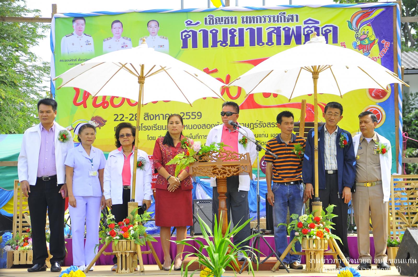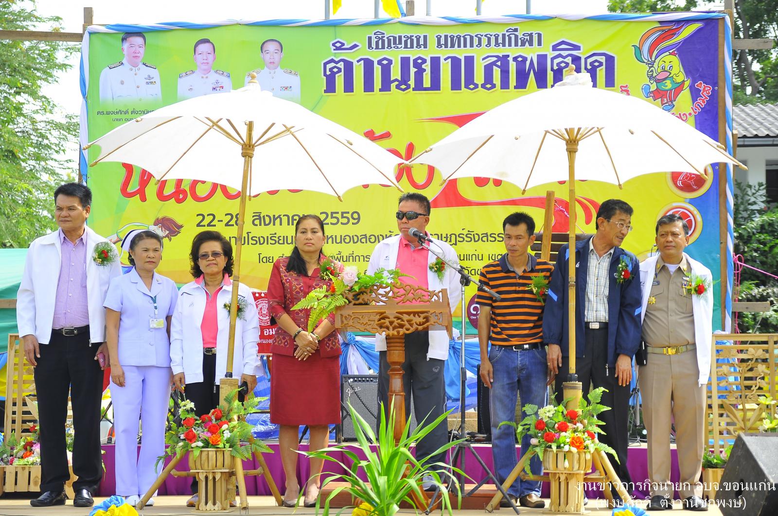ดร.พงษ์ศักดิ์ ตั้งวานิชกพงษ์ นายกองค์การบริหารส่วนจังหวัดขอนแก่น เป็นประธานเปิดงานมหกรรมการกีฬาต้านยาเสพติด “ หนองสองห้องเกมส์ ” ณ สนามกีฬาโรงเรียนชุมชนหนองสองห้อง อำเภอหนองสองห้อง จังหวัดขอนแก่น มี นายศุภสิน ภูศรีโสม ผอ.สพป.ขอนแก่น เขต3 กล่าวรายงาน นายธวัชชัย รอดงาม นายอำเภอหนองสองห้อง นายศิริชัย ฉัตรชัยพลรัตน์ ส.อบจ.ขอนแก่น เขต อ.หนองสองห้อง นายคจิตร พงษ์คำพันธ์ ส.อบจ.ขอนแก่น เขต อำเภอพล ร่วมเป็นเกียรติในพิธี เมื่อ 22 สิงหาคม 2559