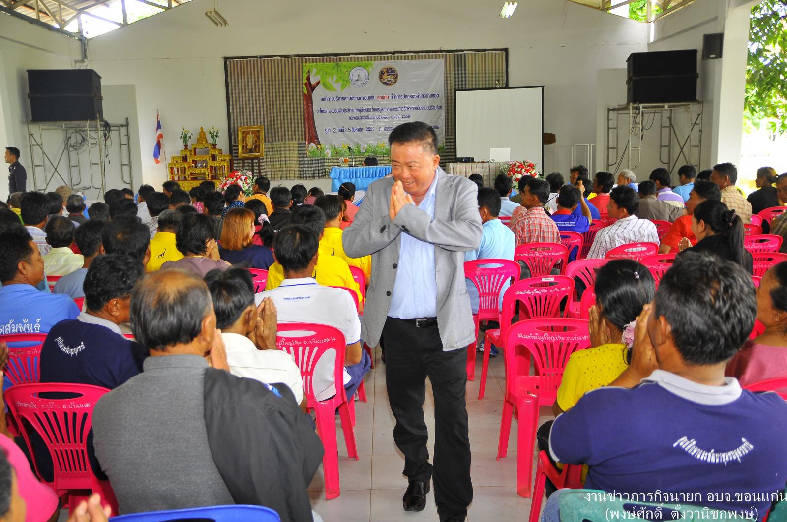 ดร.พงษ์ศักดิ์ ตั้งวานิชกพงษ์ นายกองค์การบริหารส่วนจังหวัดขอนแก่น เป็นประธานเปิดโครงการเพิ่มประสิทธิภาพผู้นำชุมชน ในการบูรณาการมาตรการรักษาความเป็นระเบียบเรียบร้อยและพัฒนาท้องถิ่นอำเภอบ้านแฮด ประจำปี 2559 รุ่น 2 พร้อมบรรยายพิเศษในหัวข้อ” บทบาทหน้าที่ของผู้นำท้องถิ่นในการพัฒนาท้องถิ่น ” ณ หอประชุมอำเภอบ้านแฮด เมื่อ 25 สิงหาคม 2559 โดยมีนางนริศรา อรุณเดชาชัย ส.อบจ.ขอนแก่น เขต อ.บ้านแฮด พร้อมด้วย นายปรีดา สุขใจ นายอำเภอบ้านแฮด ร่วมเป็นเกียรติในพิธี
