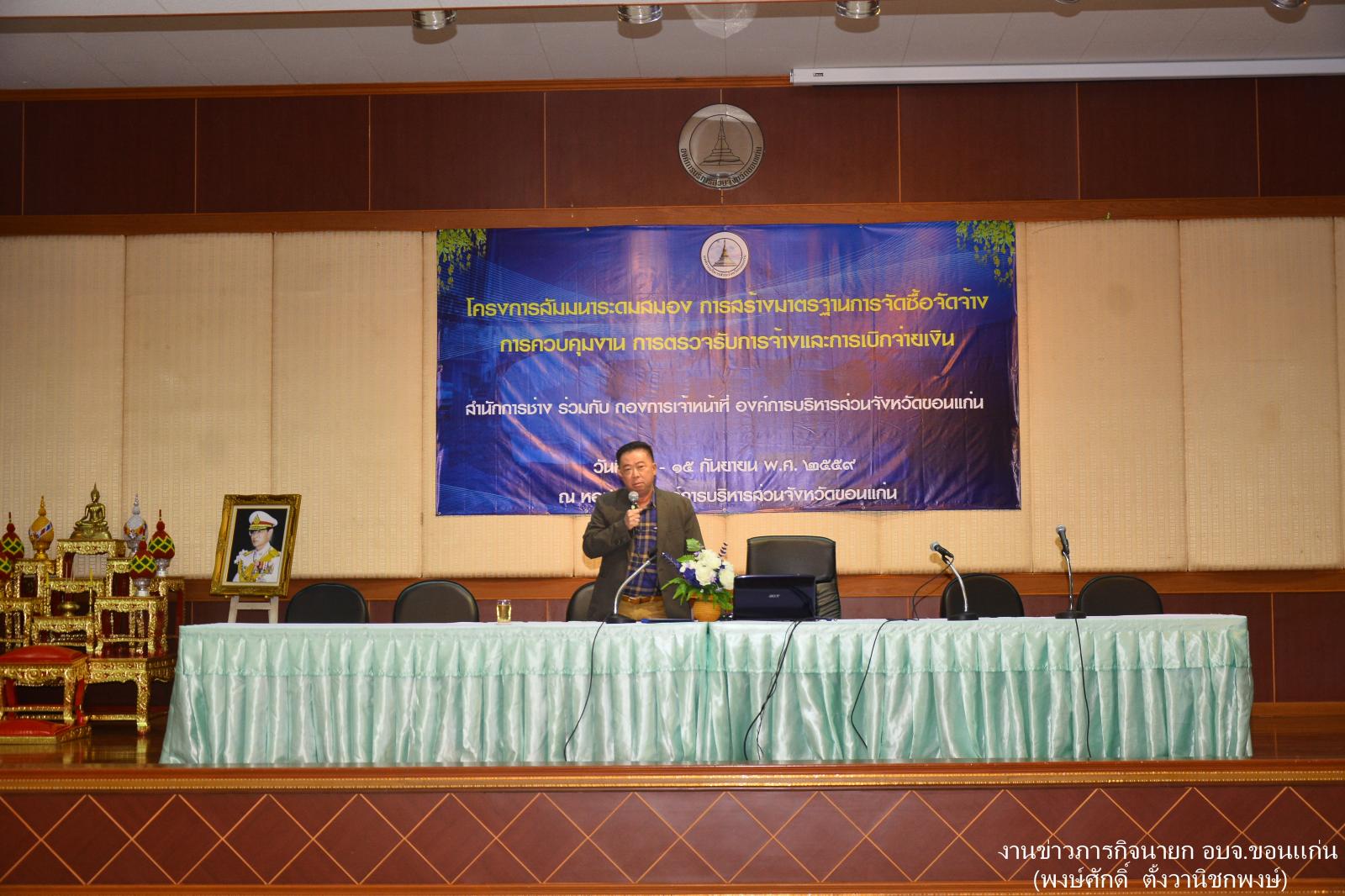 ดร.พงษ์ศักดิ์ ตั้งวานิชกพงษ์ นายกองค์การบริหารส่วนจังหวัดขอนแก่น เป็นประธานเปิด เมื่อ 14 กันยายน 2559 ณ หอประชุมองค์การบริหารส่วนจังหวัดขอนแก่น โดยมีข้าราชการ ลูกจ้างประจำและพนักงานจ้าง ผู้ปฏิบัติหน้าที่เกี่ยวกับการจัดซื้อจัดจ้าง การควบคุมงาน การตรวจรับการจ้างและการเบิกจ่ายเงิน ขององค์การบริหารส่วนจังหวัดขอนแก่น เข้าร่วมโครงการจำนวน 200 คน