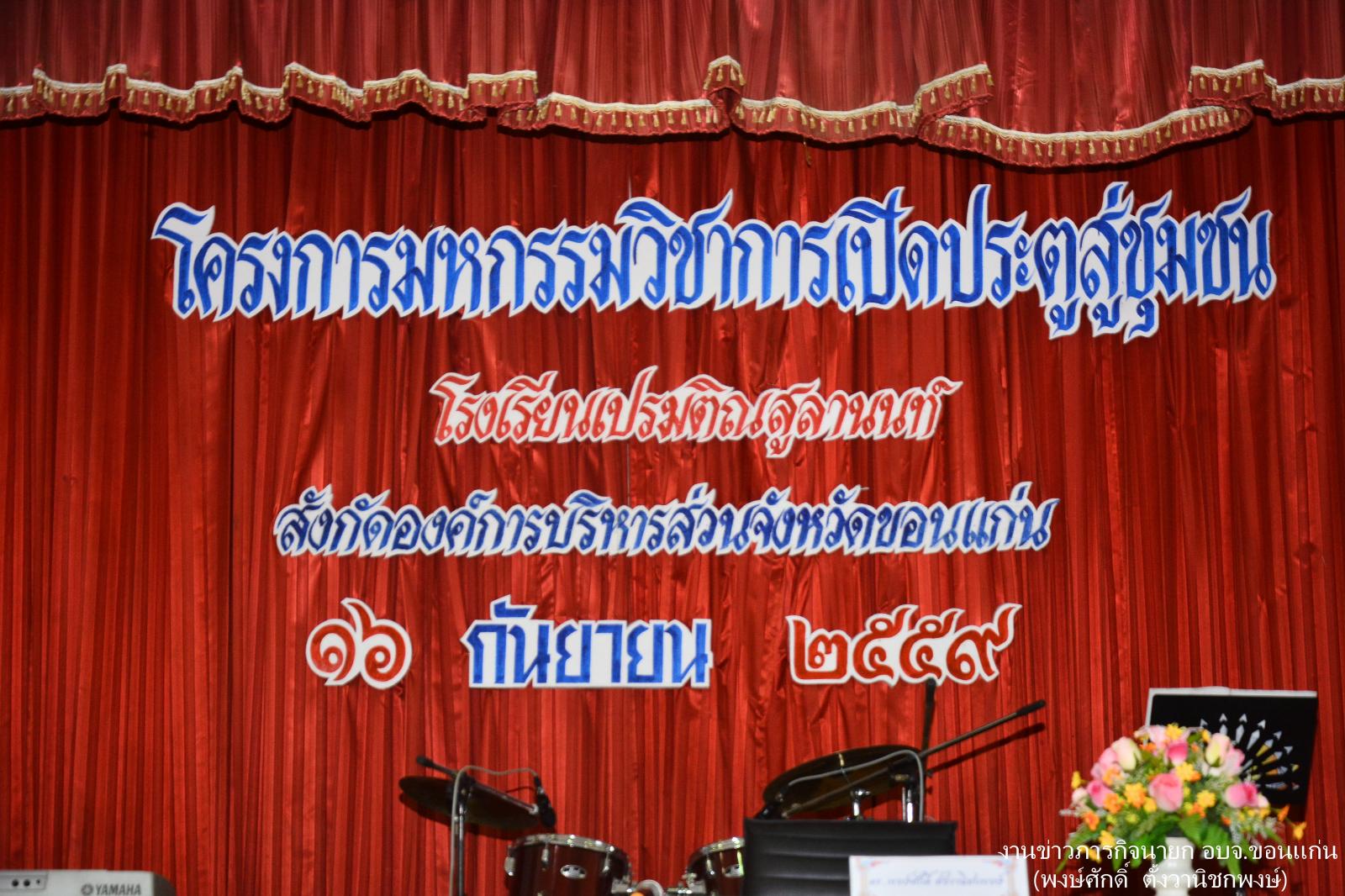 ดร.พงษ์ศักดิ์ ตั้งวานิชกพงษ์ นายกองค์การบริหารส่วนจังหวัดขอนแก่น ให้เกียรติเป็นประธานในพิธีเปิดงาน “ มหกรรมวิชาการเปิดประตูสู่ชุมชน ” ณ หอประชุมโรงเรียนเปรมติณสูลานนท์ อำเภอน้ำพอง จังหวัดขอนแก่น โดยมี นายวันเผด็จ มีชัย ผู้อำนวยการโรงเรียนเปรมติณสูลานนท์ กล่าวรายงาน นายนพพร ปิติสุวรรณรัตน์ ส.อบจ.ขอนแก่น เขต อ.น้ำพอง คณะผู้บริหารโรงเรียนในพื้นที่/ครู และนักเรียนจากโรงเรียนต่างๆ ร่วมให้การต้อนรับ เมื่อ 16 กันยายน 2559