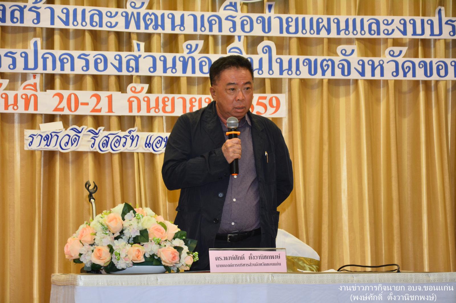 ดร.พงษ์ศักดิ์ ตั้งวานิชกพงษ์ นายกองค์การบริหารส่วนจังหวัดขอนแก่น เป็นประธานเปิดอบรมเชิงปฏิบัติการโครงสร้างและพัฒนาเครือข่ายแผนและงบประมาณการศึกษา ขององค์กรปกครองส่วนท้องถิ่น ในจังหวัดขอนแก่น โดยมี นางพัฒนาวดี จันทร์นวล ปลัด อบจ.ขอนแก่น นางสาวนงลักษณ์ รัตนจันทร์ และ นายธาดา พรหมสาขา ณ สกลนคร รองปลัด อบจ.ขอนแก่น พร้อมด้วย ข้าราชการ อบจ.ขอนแก่น ร่วมเป็นเกียรติในพิธี เมื่อ 20 กันยายน 2559