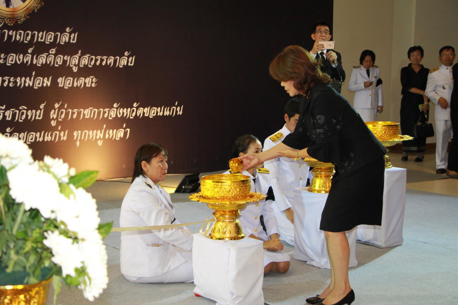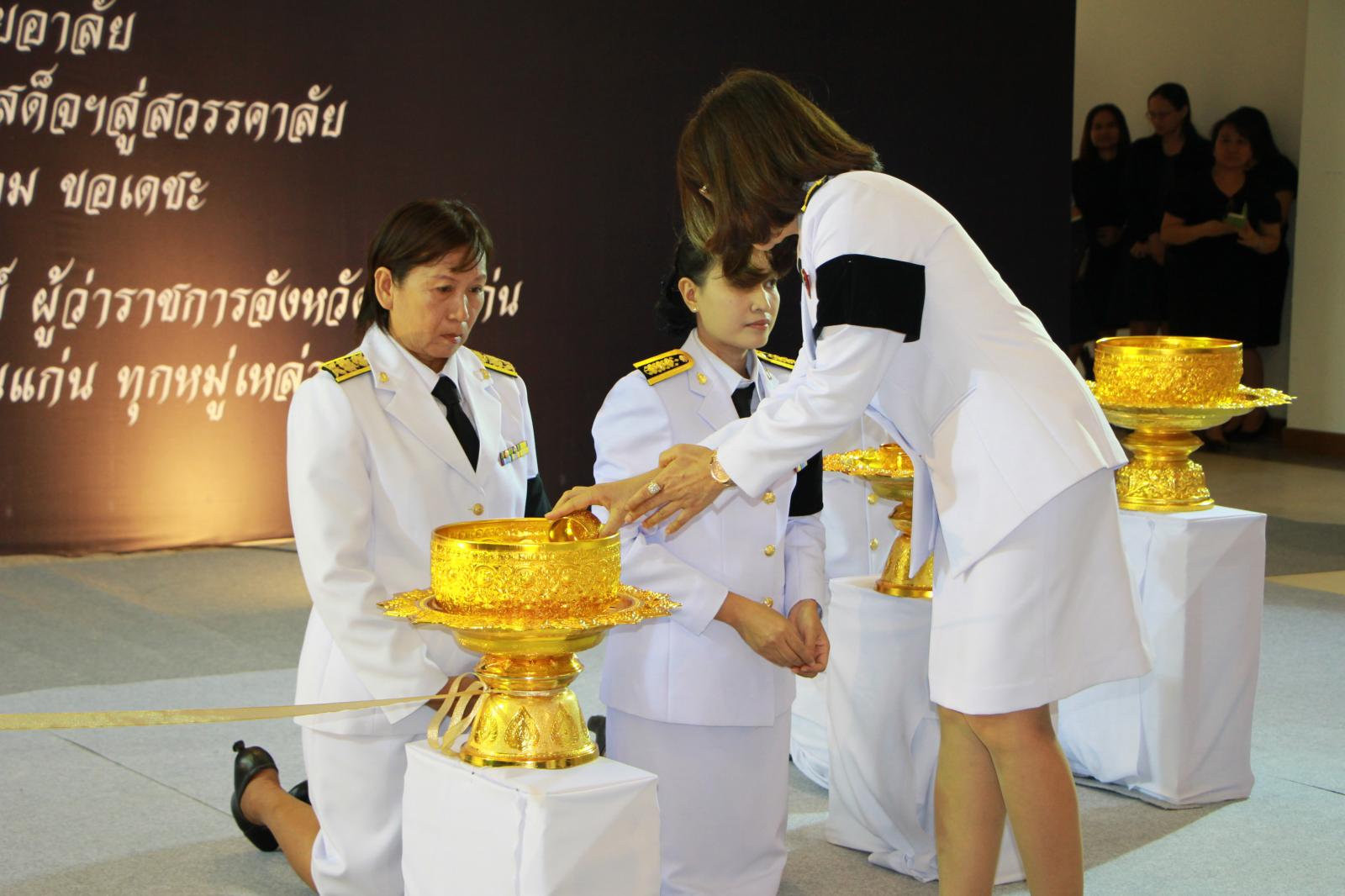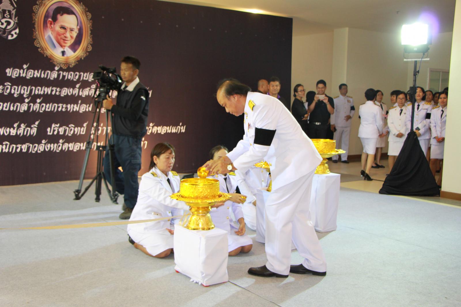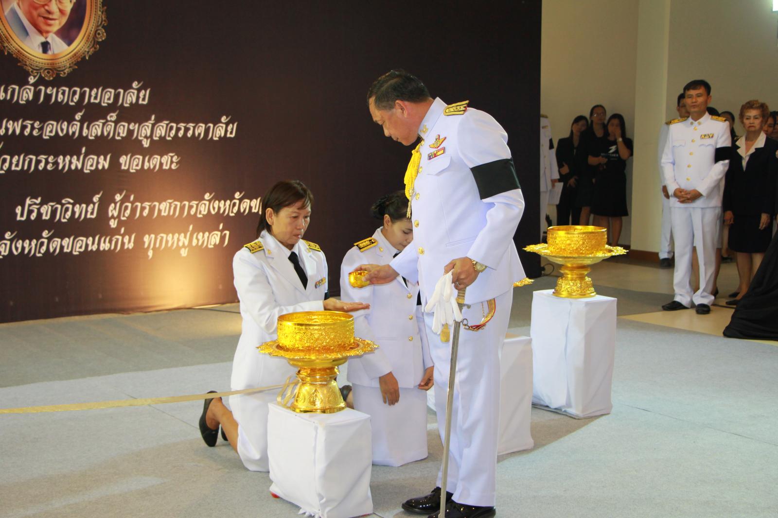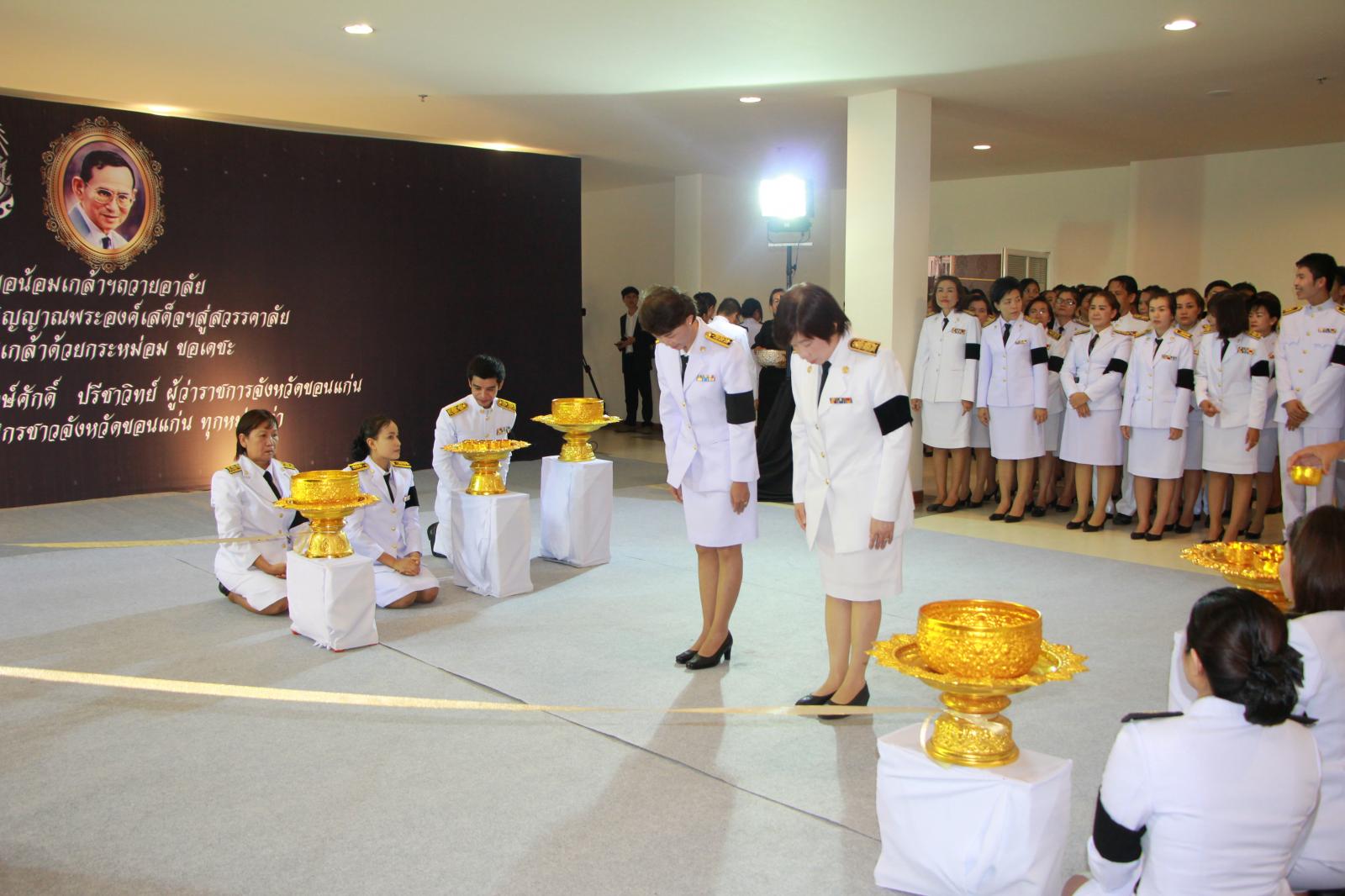 ในวันที่ 14 ตุลาคม 2559 นายก อบจ.ขอนแก่น ดร.พงษ์ศักดิ์ ตั้งวานิชกพงษ์ พร้อมด้วยรองนายก อบจ.ขอนแก่น นายสิทธิกุล ภูคำวงศ์ ,ปลัด อบจ.ขอนแก่น นางพัฒนาวดี จันทร์นวล หัวหน้าส่วนราชการ ข้าราชการ อบจ.ขอนแก่น ร่วมพิธีถวายน้ำสรงพระบรมศพ และพิธีบำเพ็ญกุศลเพื่อถวายเป็นพระราชกุศล แด่พระบาทสมเด็จพระปรมินทรมหาภูมิพลอดุลยเดช มหิตลาธิเบศรรามาธิบดี จักรีนฤบดินทร สยามินทราธิราช บรมนาถบพิตร โดยมี ผู้ว่าราชการจังหวัดขอนแก่น นายพงษ์ศักดิ์ ปรีชาวิทย์ เป็นประธาน ทั้งนี้มีผู้แทนจากหน่วยงานภาครัฐ และเอกชน ตลอดจนประชาชนในจังหวัดขอนแก่น เข้าร่วมพิธี ณ ห้องประชุมแก่นเมืองศาลากลางจังหวัดขอนแก่น (หลังใหม่) ชั้น 1 อ.เมืองขอนแก่น จ.ขอนแก่น