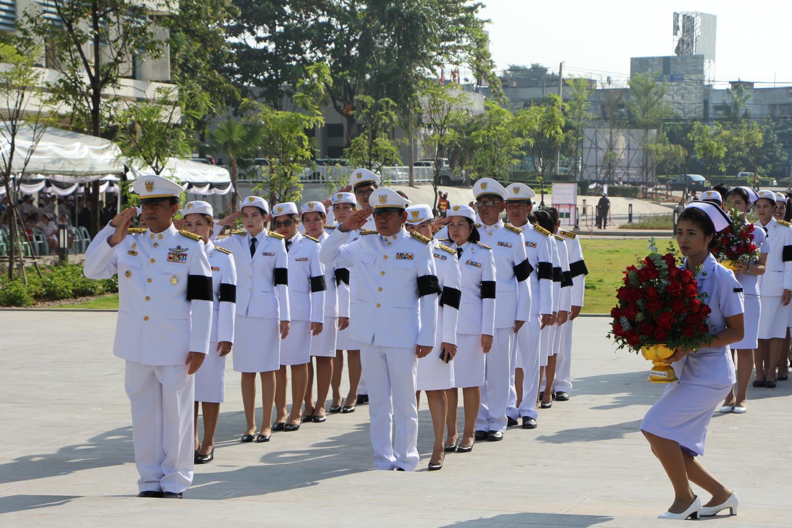 ร่วมพิธีวางพานพุ่มดอกไม้สด เนื่องในพิธีถวายราชสักการะสมเด็จพระศรีนครินทราบรมราชนนี