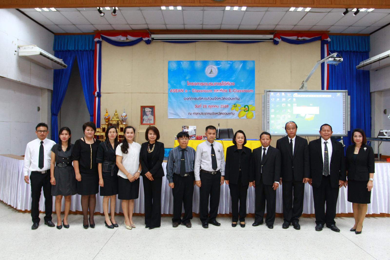 ในวันที่ 28 ตุลาคม 2559 นายก อบจ.ขอนแก่น ดร.พงษ์ศักดิ์ ตั้งวานิชกพงษ์ มอบหมายให้ รองปลัด อบจ.ขอนแก่น น.ส.นงลักษณ์ รัตนจันทร์ เป็นประธาน เปิดโครงการอบรมการใช้ห้อง ASEAN e – Classroom และห้อง E-Classroom ณ ศาลาประชาคมจังหวัดขอนแก่น