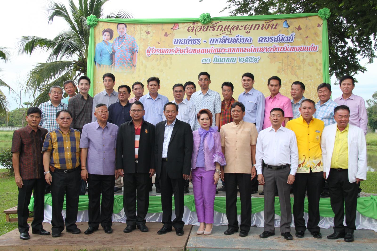 ดร.พงษ์ศักดิ์ ตั้งวานิชกพงษ์ นายกองค์การบริหารส่วนจังหวัดขอนแก่น พร้อมด้วย นางพัฒนาวดี จันทร์นวล ปลัด อบจ.ขอนแก่น นายธาดา พรหมสาขา ณ สกลนคร และ นายประสิทธิ์ อุดมธนะธีระ รองปลัด อบจ.ขอนแก่น ผู้อำนวยการสำนัก/กอง องค์การบริหารส่วนจังหวัดขอนแก่น ร่วมส่งนายกำธร ถาวรสถิตย์ ผู้ว่าราชการจังหวัดขอนแก่น และนางพิมพ์วิมล ถาวรสถิตย์ นายกเหล่ากาชาดจังหวัดขอนแก่น กลับภูมิลำเนา ในโอกาสเกษียณอายุราชการ เมื่อ 30 กันยายน 2559 ณ จวนผู้ว่าราชการจังหวัดขอนแก่น