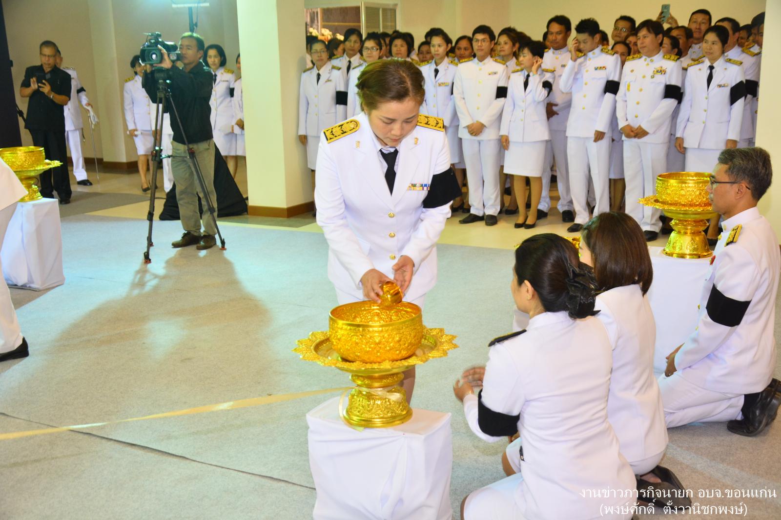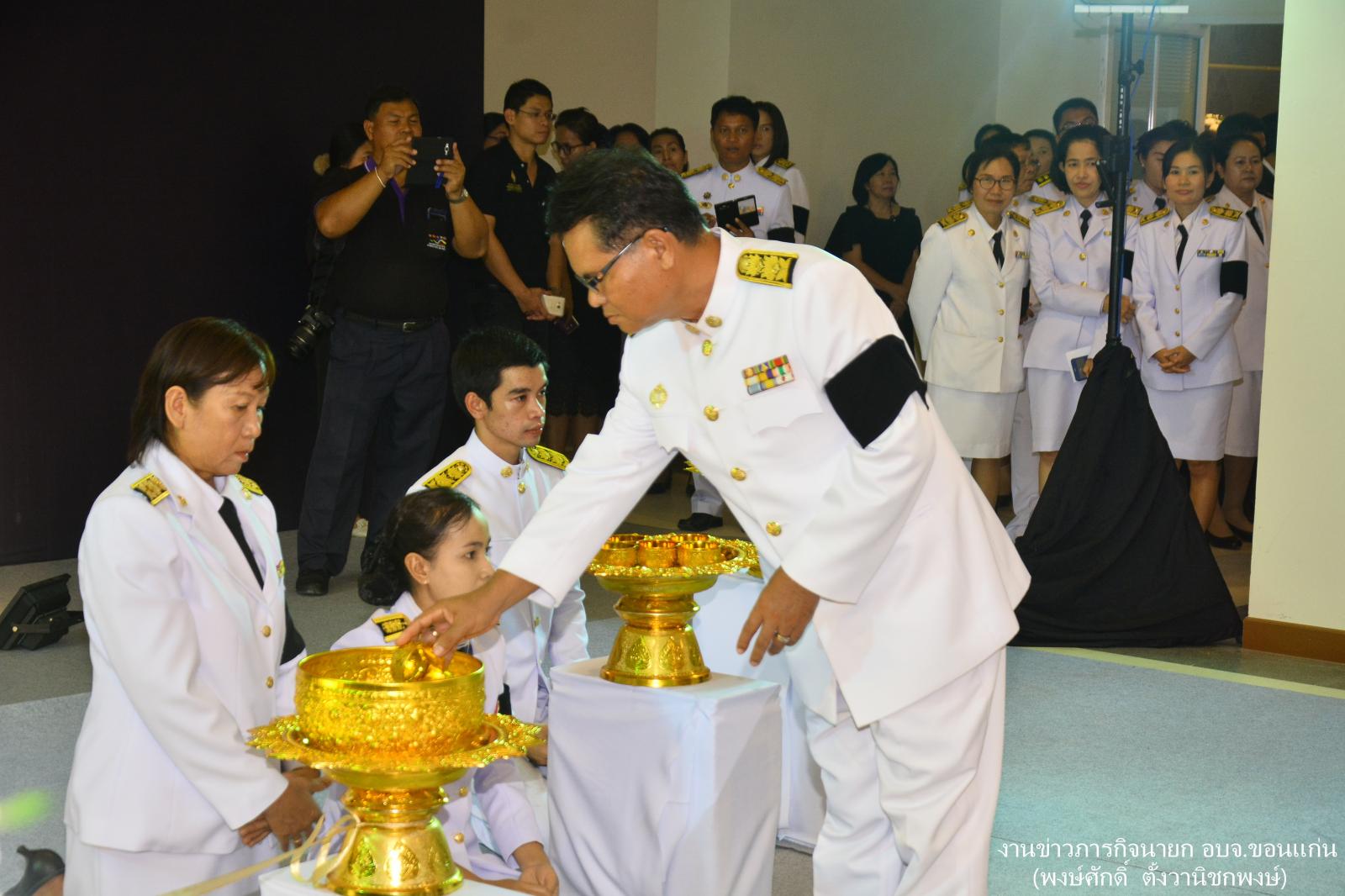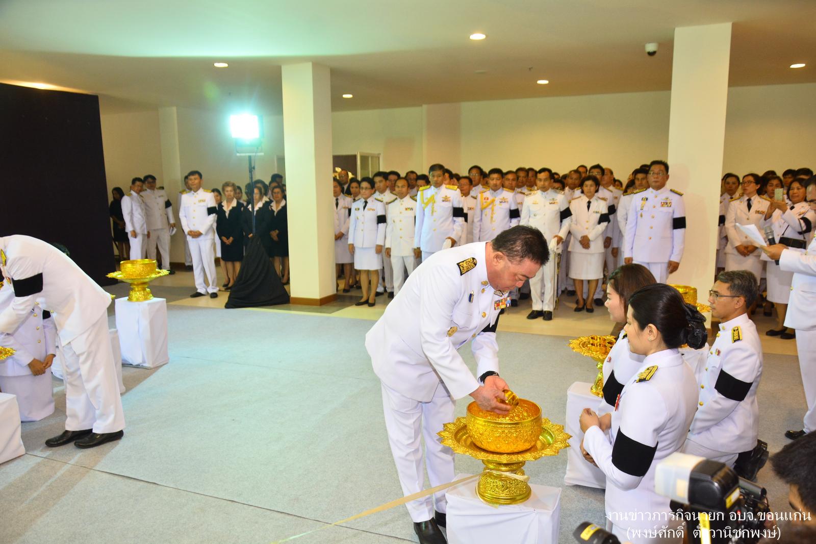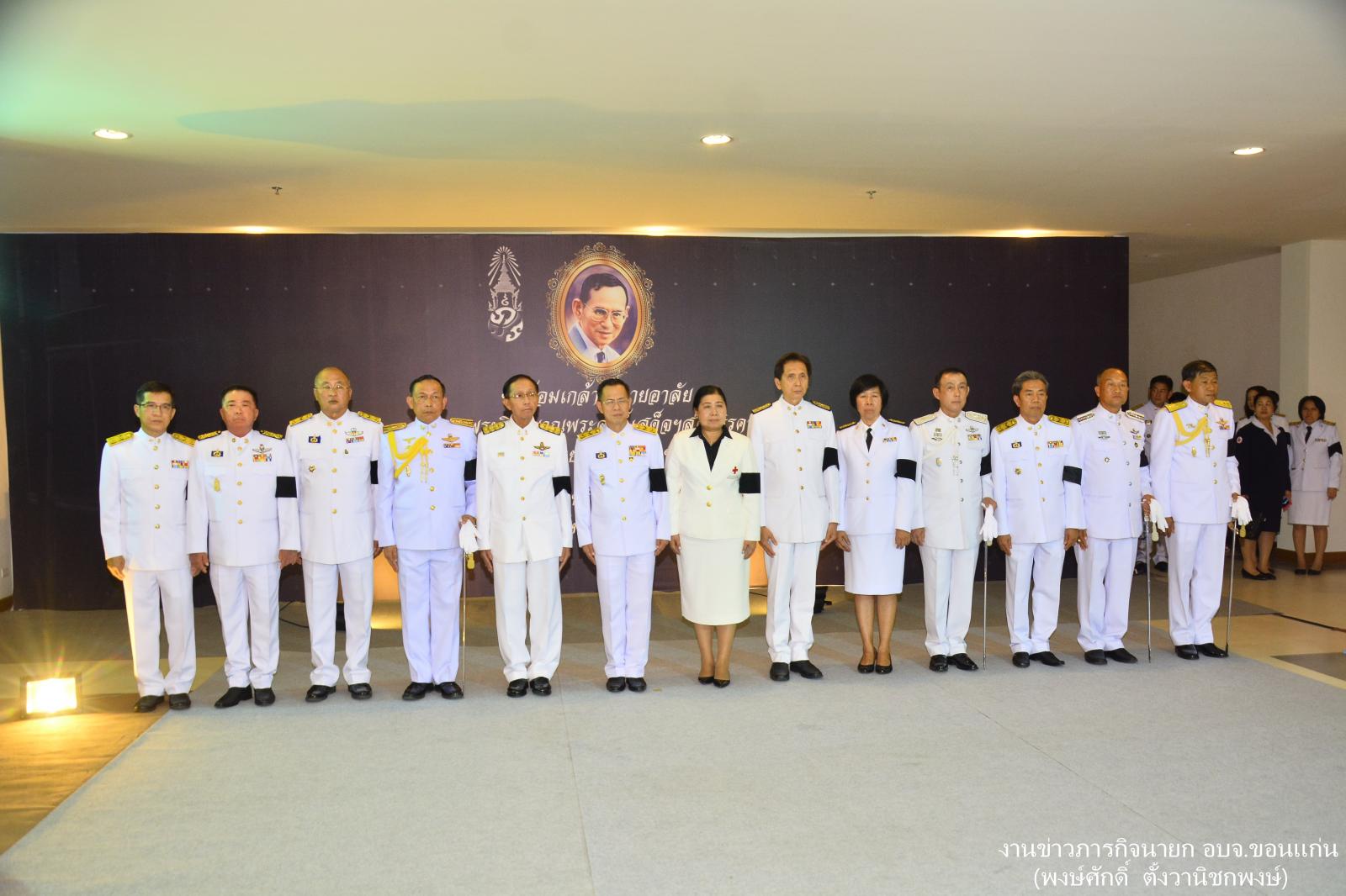 ดร.พงษ์ศักดิ์ ตั้งวานิชกพงษ์ นายกองค์การบริหารส่วนจังหวัดขอนแก่น พร้อมด้วย สมาชิกสภา อบจ.ขอนแก่น ปลัด รองปลัด ผู้อำนวยการสำนัก/กอง องค์การบริหารส่วนจังหวัดขอนแก่น ร่วมในพิธีบำเพ็ญกุศลเพื่อถวายเป็นพระราชกุศลแด่พระบาทสมเด็จพระเจ้าอยู่หัว ในพระบรมโกศ ณ ห้องประชุมแก่นเมือง ศาลากลางจังหวัดขอนแก่น หลังใหม่ อำเภอเมืองขอนแก่น จังหวัดขอนแก่น เมื่อ 14 ตุลาคม 2559
