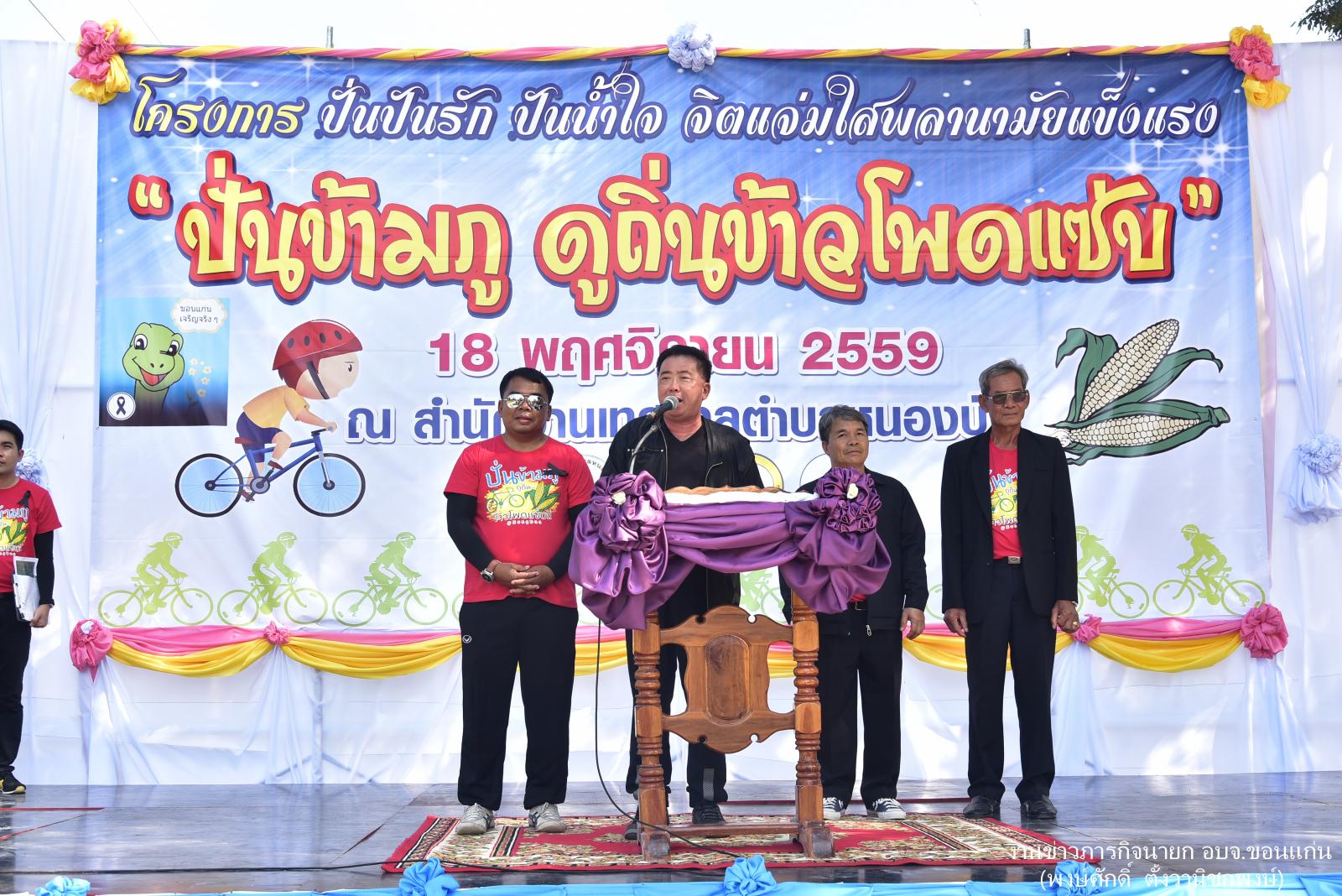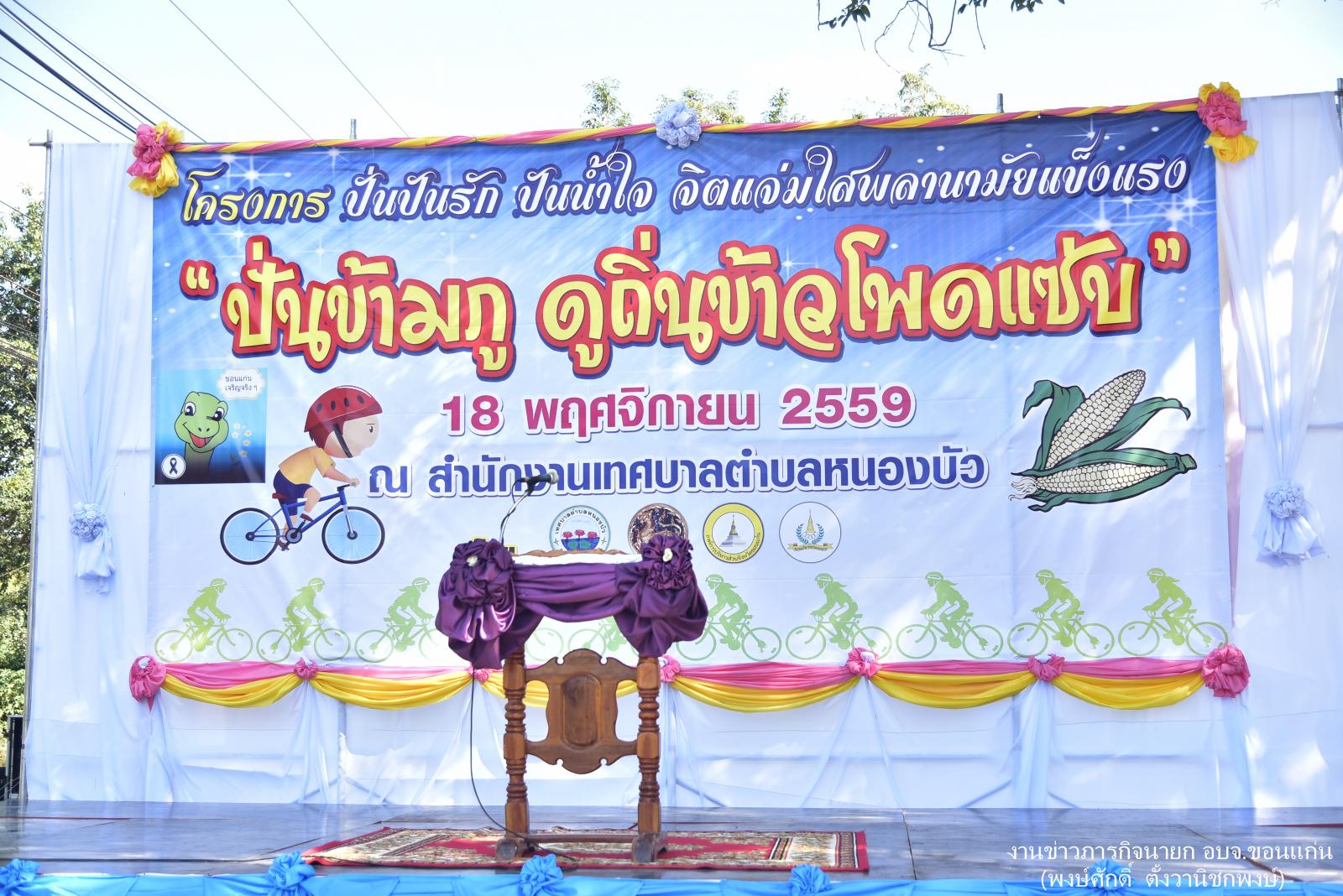ดร.พงษ์ศักดิ์ ตั้งวานิชกพงษ์ นายกองค์การบริหารส่วนจังหวัดขอนแก่น เป็นประธานเปิดโครงการปั่นปันรัก จิตแจ่มใส พลานามัยแข็งแรง“ปั่นข้ามภู ดูถิ่นข้าวโพดแซ่บ” โดยมี นายอุบล ธงศิลา นายกเทศมนตรีตำบลหนองบัว กล่าวรายงาน นายธณัช เครือมา ส.อบจ.ขอนแก่น เขต อ.บ้าน พร้อมด้วยคณะ และ ประชาชนชาวตำบลหนองบัว จำนวนมากให้การต้อนรับอย่างอบอุ่น เมื่อ 18 พฤศจิกายน 2559 ณ สำนักงานเทศบาลตำบลหนองบัว อำเภอบ้านฝาง จังหวัดขอนแก่น