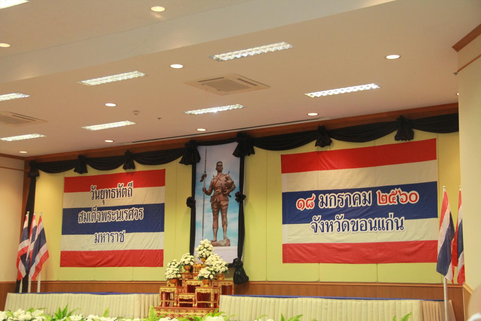 เมื่อวันที่ 18 มกราคม 2560 นายก อบจ.ขอนแก่น ดร.พงษ์ศักดิ์ ตั้งวานิชกพงษ์ มอบหมายให้ รองปลัด อบจ.ขอนแก่น น.ส.นงลักษณ์ รัตนจันทร์ หัวหน้าส่วนราชการ ข้าราชการ อบจ.ขอนแก่น ร่วมงานพิธีวางพานพุ่มถวายราชสักการะ “วันยุทธหัตถีสมเด็จพระนเรศวรมหาราช” เพื่อแสดงออกถึงความจงรักภักดีและน้อมรำลึกถึงพระมหากรุณาธิคุณสมเด็จพระนเรศวรมหาราช โดยมี ผู้ว่าราชการจังหวัดขอนแก่น นายพงษ์ศักดิ์ ปรีชาวิทย์ เป็นประธาน ทั้งนี้มีผู้แทนจากหน่วยงานภาครัฐและเอกชน เข้าร่วมพิธี ณ ห้องประชุมแก่นเมือง ศาลากลางจังหวัดขอนแก่น (หลังใหม่) อ.เมืองขอนแก่น จ.ขอนแก่น
