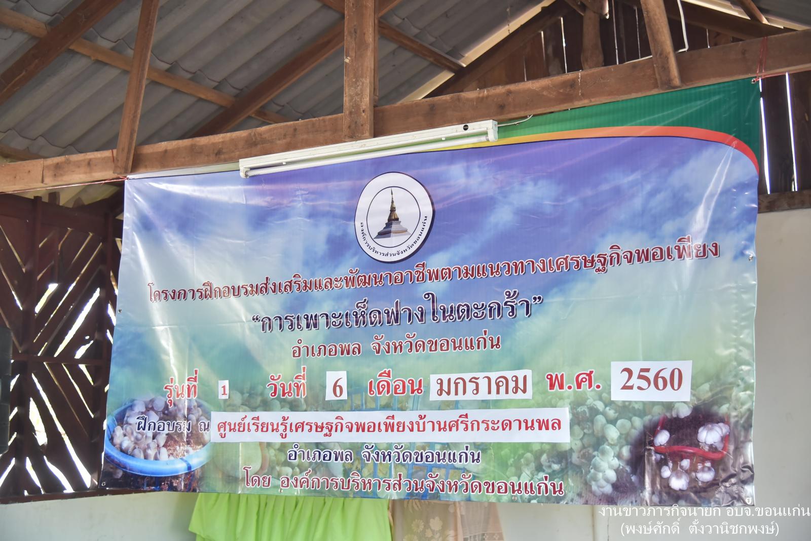 ดร.พงษ์ศักดิ์ ตั้งวานิชกพงษ์ นายกองค์การบริหารส่วนจังหวัดขอนแก่น เป็นประธานเปิดโครงการฝึกอบรมส่งเสริมและพัฒนาอาชีพตามแนวทางปรัชญาเศรษฐกิจพอเพียง “ การเพาะเห็ดฟางในตะกร้า ” อำเภอพล จังหวัดขอนแก่น รุ่น 1 โดยมีเกษตรกรและประชาชนทั่วไปในเขตพื้นที่อำเภอพล จำนวน 150 คนเข้าร่วมโครงการ นายคจิตร พงษ์คำพันธ์ ส.อบจ.ขอนแก่น เขต อำเภอพล พร้อมด้วย นายทองสุข ธนูรัตน์ ส.อบจ.ขอนแก่น เขต อ.แวงใหญ่ ร่วมในพิธี ณ ศูนย์เรียนรู้เศรษฐกิจพอเพียงบ้านศรีกระดานพล อำเภอพล จังหวัดขอนแก่น เมื่อ 6 มกราคม 2560