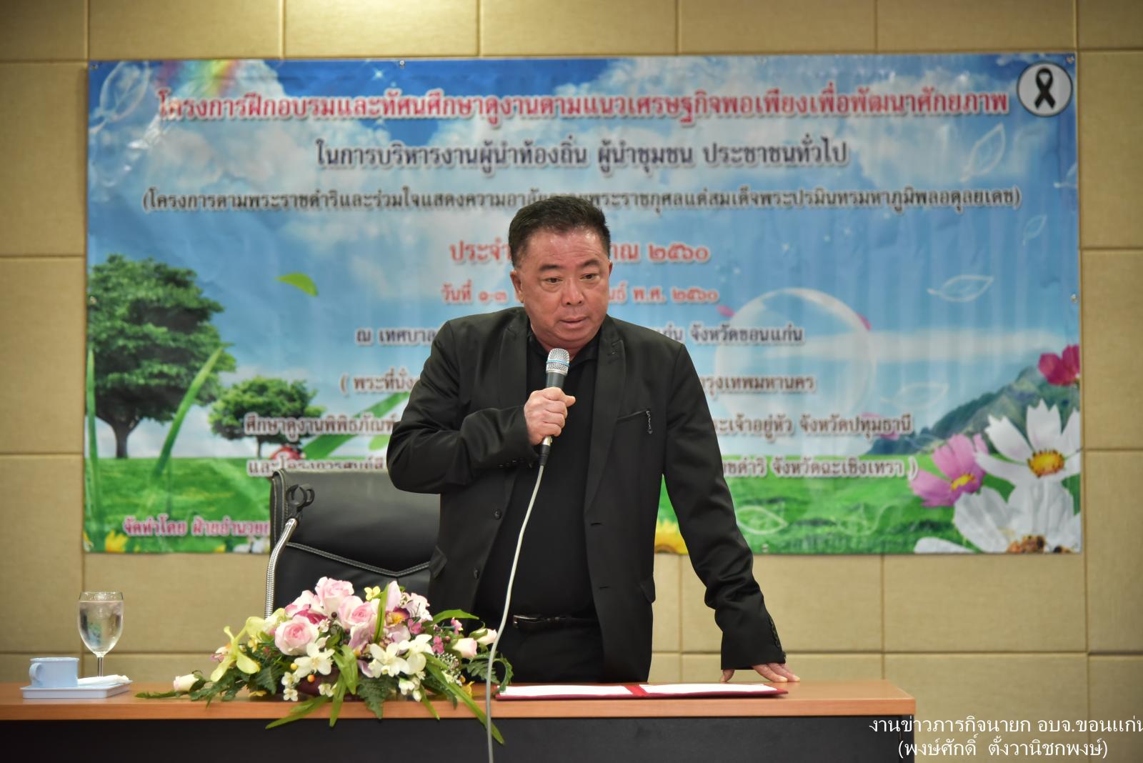 เมื่อวันที่ 1 ก.พ.60 ดร.พงษ์ศักดิ์ ตั้งวานิชกพงษ์ นายกองค์การบริหารส่วนจังหวัดขอนแก่น เป็นประธานเปิดโครงการฝึกอบรมและทัศนศึกษาดูงานตามแนวเศรษฐกิจพอเพียงเพื่อพัฒนาศักยภาพในการบริหารงานผู้นำท้องถิ่น ผู้นำชุมชน ประชาชนทั่วไป โดยมี ว่าที่ ร.ต.สมพร เทพวงษา นายกเทศมนตรีตำบลบ้านค้อ กล่าวรายงาน คณะผู้บริหาร สมาชิกสภาฯ พนักงานเทศบาล ร่วมพิธี ณ เทศบาลตำบลบ้านค้อ อำเภอเมือง จังหวัดขอนแก่น