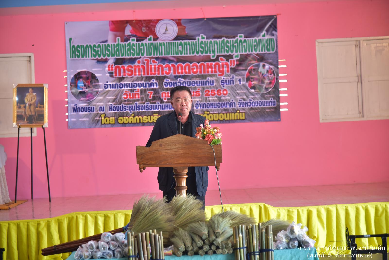 เมื่อวันที่ 7 กุมภาพันธ์ 2560 ดร.พงษ์ศักดิ์ ตั้งวานิชกพงษ์ นายกองค์การบริหารส่วนจังหวัดขอนแก่น เป็นประธานเปิดโครงการอบรมส่งเสริมอาชีพตามแนวทางปรัชญาเศรษฐกิจพอเพียง “ การทำไม้กวาดดอกหญ้า” อำเภอหนองนาคำ รุ่นที่ 1 โดยมี ด.ต.พิชิต ศรีวิไล เลขานุการสภาองค์การบริหารส่วนจังหวัดขอนแก่น นายวิบูลย์ เรืองประเสริฐกุล ส.อบจ.ขอนแก่น เขต อ.เวียงเก่า ร่วมพบปะผู้เข้าร่วมโครงการ จำนวน 200 คน ณ ห้องประชุมโรงเรียนบ้านหนองนาคำ อำเภอหนองนาคำ จังหวัดขอนแก่น