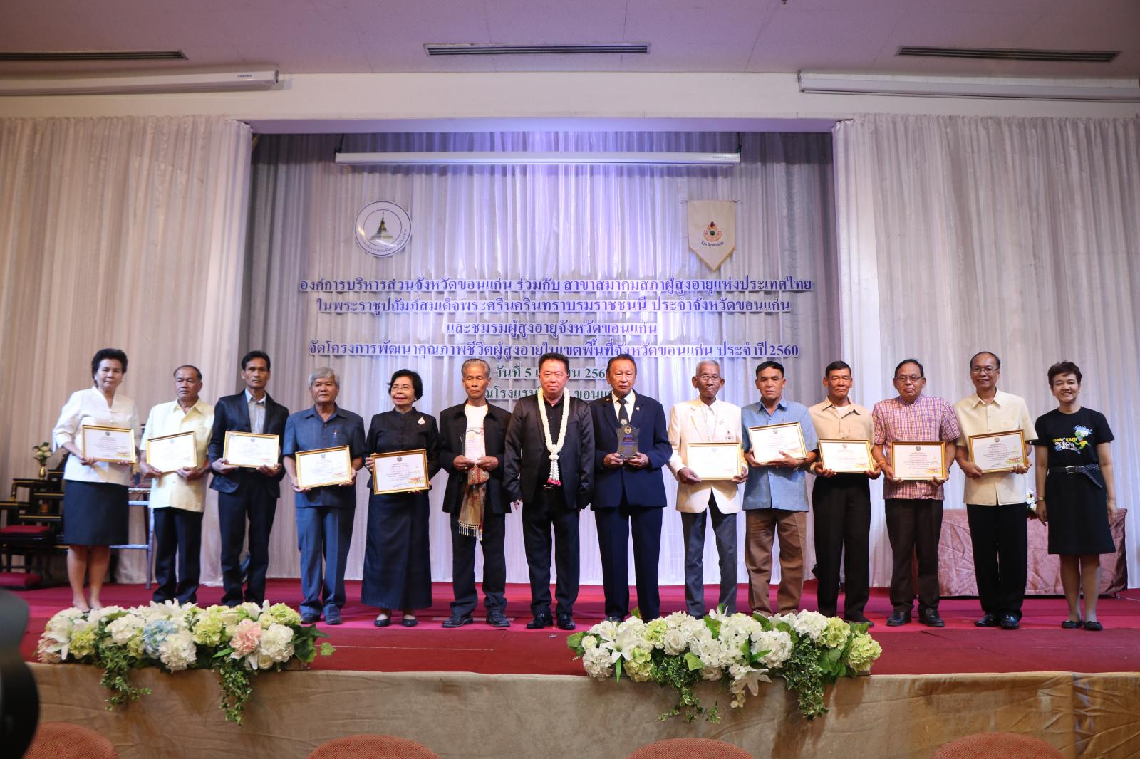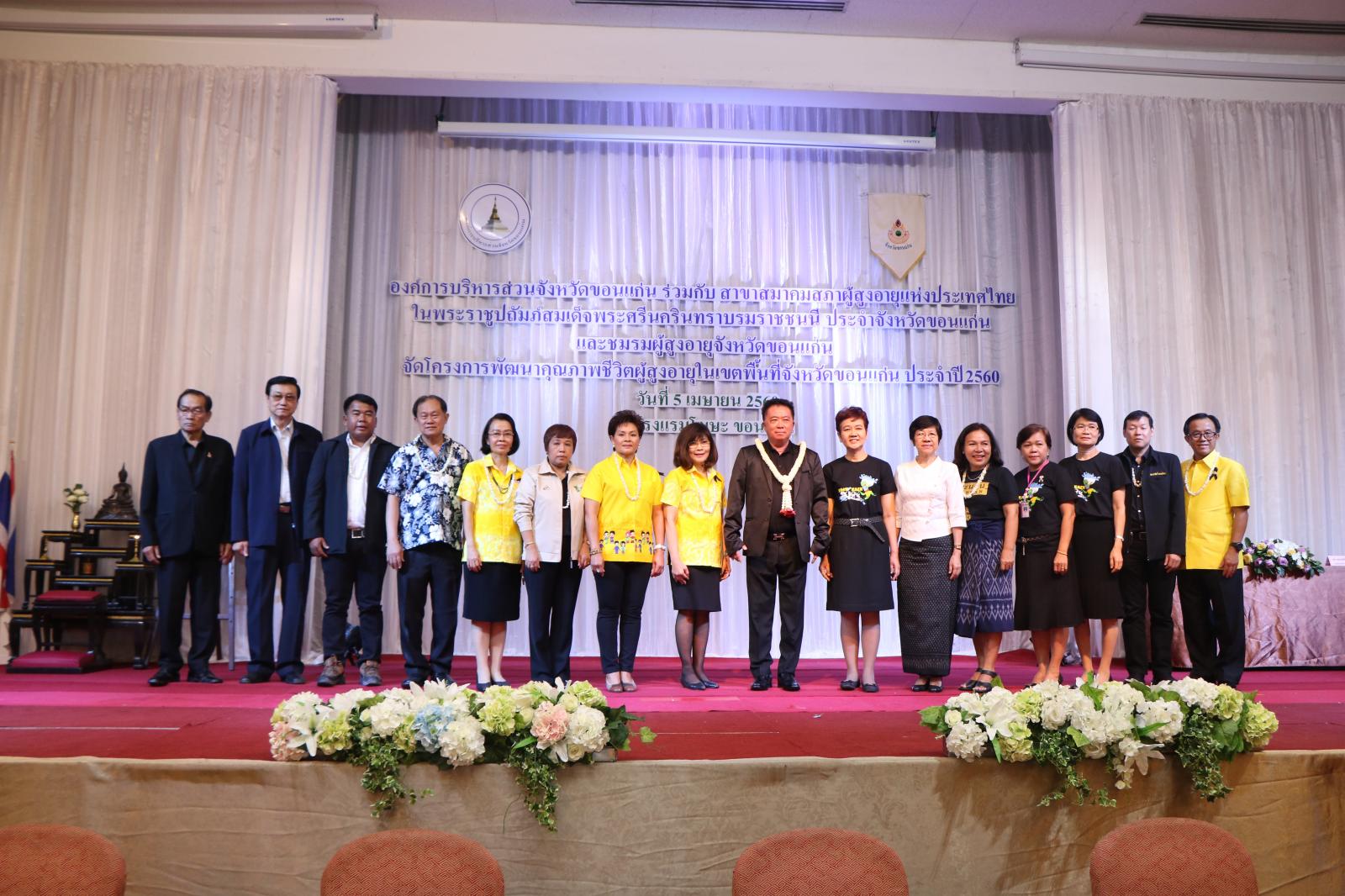 อบจ.ขอนแก่น ร่วมกับ สาขาสมาคมสภาผู้สูงอายุแห่งประเทศไทย ในพระราชูปถัมภ์สมเด็จพระศรีนครินทราบรมราชชนนี ประจำจังหวัดขอนแก่น และชมรมผู้สูงอายุจังหวัดขอนแก่น จัดทำโครงการ พัฒนาคุณภาพชีวิตผู้สูงอายุในเขตพื้นที่จังหวัดขอนแก่น ประจำปี 2560 เพื่อสร้างความรัก ความอบอุ่นให้เกิดขึ้นกับผู้สูงอายุ เปิดโอกาสนี้ให้ผู้สูงอายุได้แสดงความคิดเห็น แลกเปลี่ยนประสบการณ์ รวมทั้งแนวทางการพัฒนาชมรมผู้สูงอายุให้เจริญก้าวหน้าต่อไป