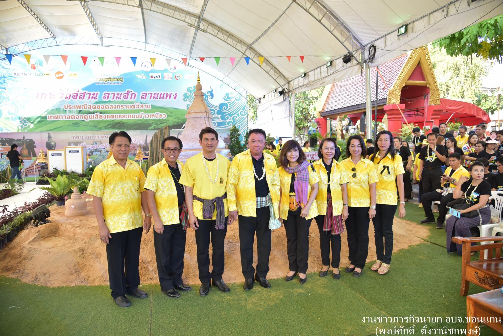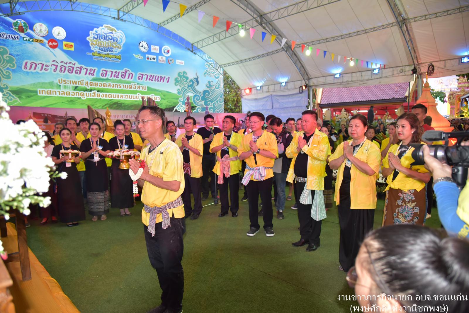 ดร.พงษ์ศักดิ์ ตั้งวานิชกพงษ์ นายกองค์การบริหารส่วนจังหวัดขอนแก่น กล่าวต้อนรับนักท่องเที่ยวและผู้เข้าร่วมในพิธีเปิดงาน "ประเพณีสุดยอดสงกรานต์อีสาน" เทศกาลดอกคูนเสียงแคนและถนนข้าวเหนียว ประจำปี 2560 โดยมีนายพงษ์ศักดิ์ ปรีชาวิทย์ ผู้ว่าราชการจังหวัดขอนแก่น เป็นประธานในพิธี นายธีระศักดิ์ ฑีฆายุพันธ์ นายกเทศมนตรีนครขอนแก่นกล่าวรายงาน นายสิทธิกุล ภูคำวงศ์ รองนายก อบจ.ขอนแก่น คณะผู้บริหาร ข้าราชการ อบจ.ขอนแก่น ร่วมในพิธี ณ บริเวณศาลหลักเมืองขอนแก่น เมื่อ 12 เมษายน 2560