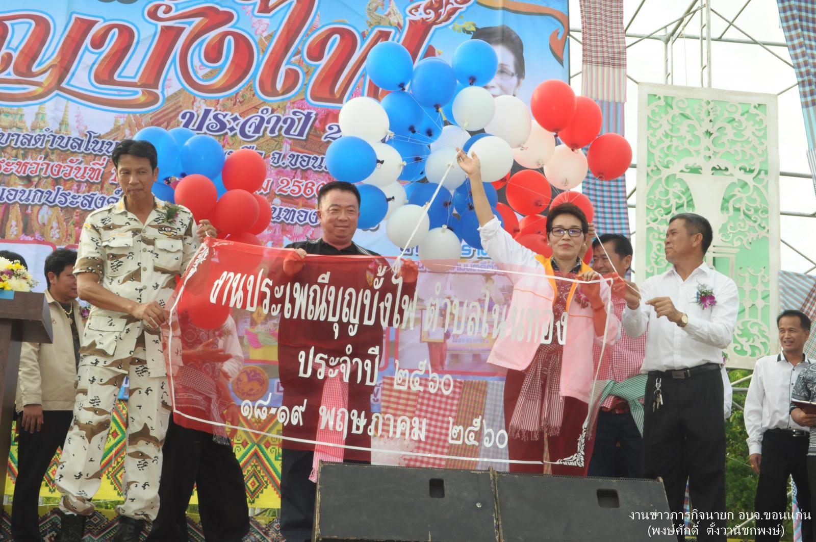 ดร.พงษ์ศักดิ์ ตั้งวานิชกพงษ์ นายกองค์การบริหารส่วนจังหวัดขอนแก่น เป็นประธานเปิดงานประเพณีบุญบั้งไฟ ตำบลโนนทอง ครั้งที่ 5 ประจำปี 2560 โดยมี นางสงกรานต์ โสภาศรี นายกเทศมนตรีตำบลโนนทอง กล่าวรายงาน นายประจวบ รักษ์แพทย์ นายอำเภอหนองเรือ สมาชิกสภาฯ กำนัน ผู้ใหญ่บ้าน ข้าราชการ เจ้าหน้าที่และลูกจ้างเทศบาลตำบลโนนทอง ร่วมในพิธี ณ สำนักงานเทศบาลตำบลโนนทองแห่งใหม่ ตำบลโนนทอง อำเภอหนองเรือ จังหวัดขอนแก่น เมื่อ 18 พฤษภาคม 2560
