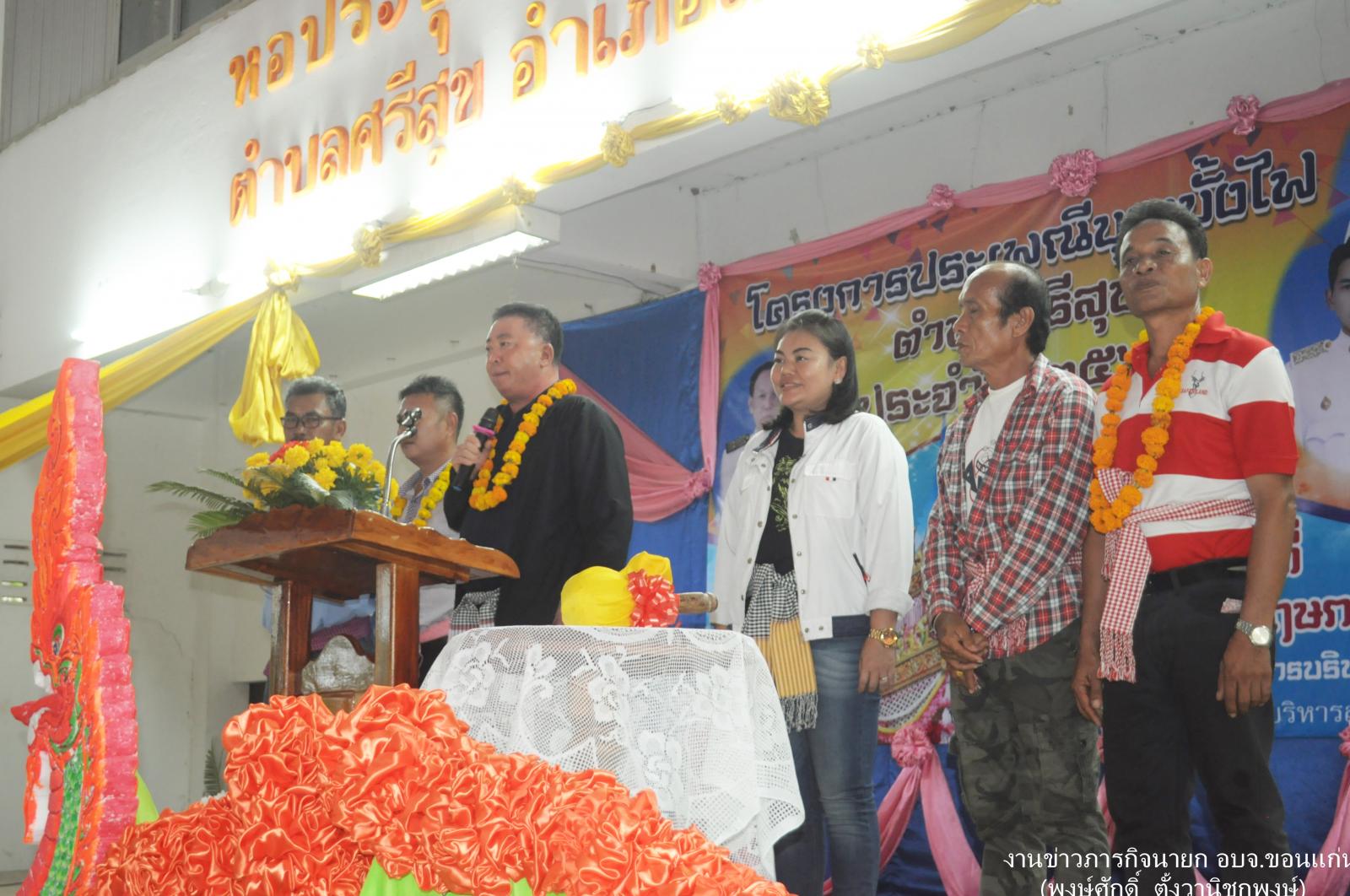 ดร.พงษ์ศักดิ์ ตั้งวานิชกพงษ์ นายกองค์การบริหารส่วนจังหวัดขอนแก่น เป็นประธานเปิดโครงการประเพณีบุญบั้งไฟตำบลศรีสุข ประจำปี 2560 โดยมี นายจารุพรรณ ภูวสันติ ส.อบจ.ขอนแก่น อ.สีชมพู เขต 2 ร่วมในพิธี นายวิชัย นนท์ธนากร นายกองค์การบริหารส่วนตำบลศรีสุข ประธานสภาอบต. สมาชิกสภาอบต. กำนัน ผู้ใหญ่บ้าน ข้าราชการ เจ้าหน้าที่และลูกจ้างอบต.ศรีสุข ให้การต้อนรับอย่างอบอุ่น ณ องค์การปริหารส่วนตำบลศรีสุข อำเภอสีชมพู จังหวัดขอนแก่น เมื่อ 21 พฤษภาคม 2560