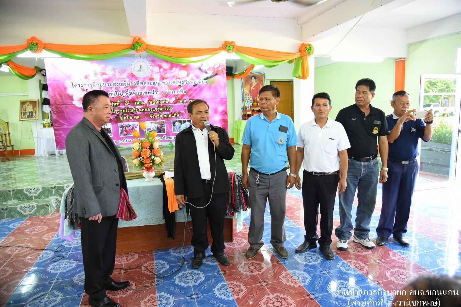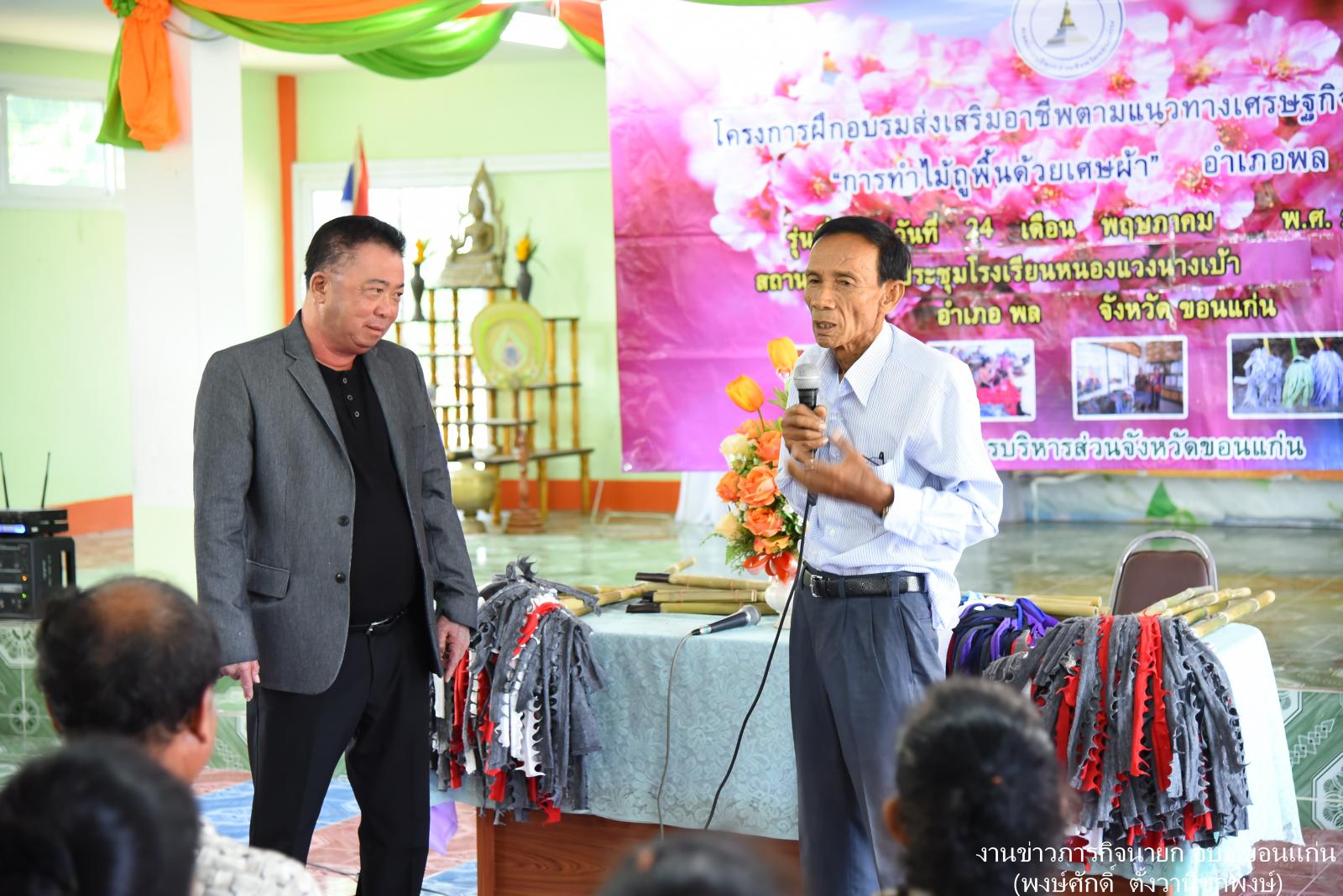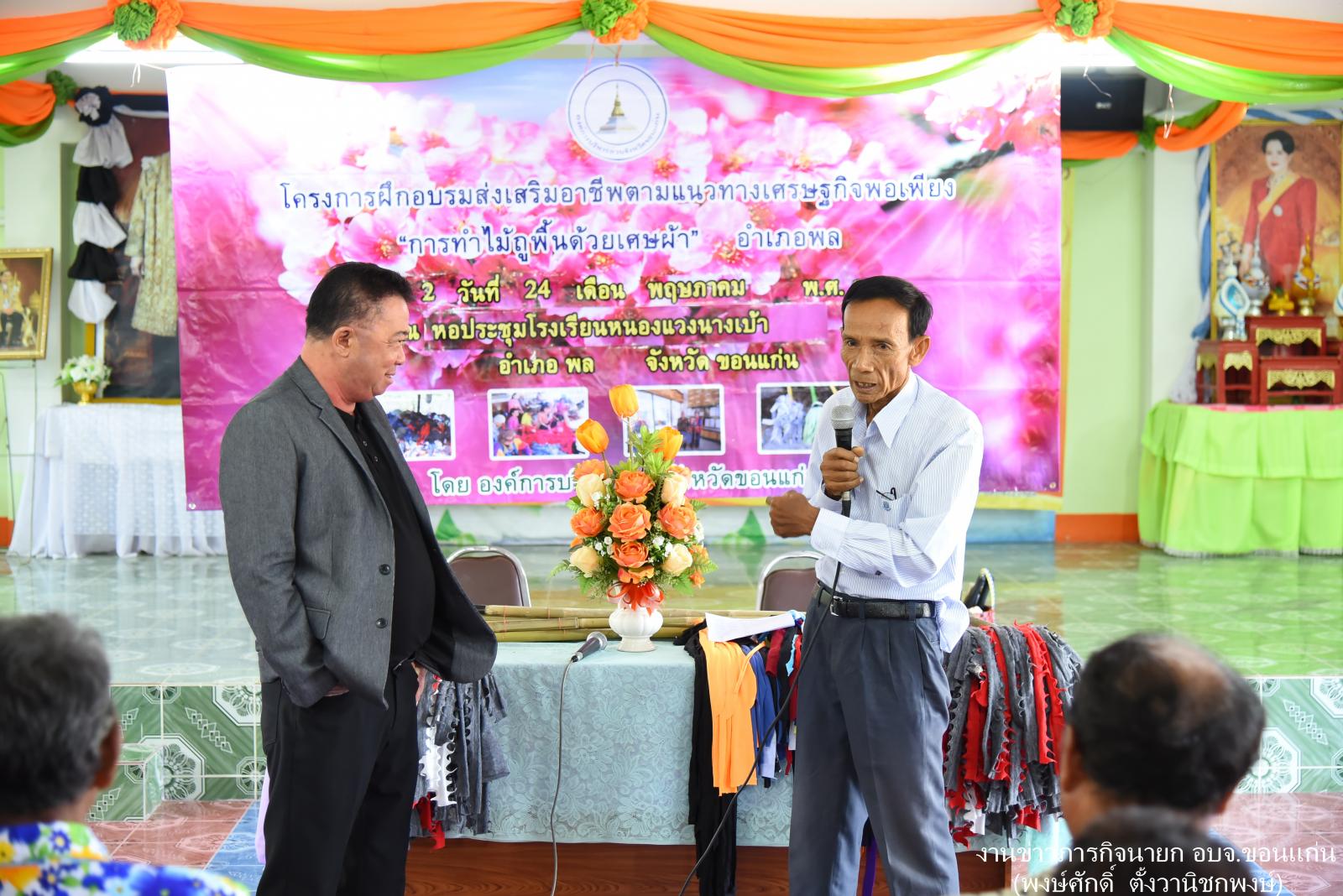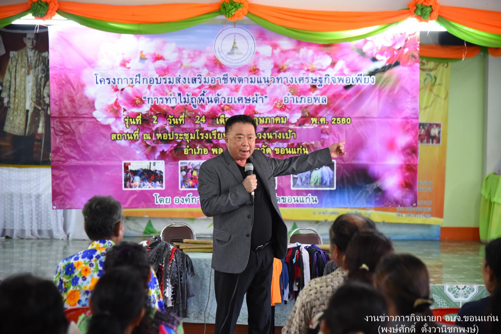 ดร.พงษ์ศักดิ์ ตั้งวานิชกพงษ์ นายกองค์การบริหารส่วนจังหวัดขอนแก่น เป็นประธานเปิดโครงการฝึกอบรมส่งเสริมอาชีพตามแนวทางเศรษฐกิจพอเพียง “ การทำไม้ถูพื้นด้วยเศษผ้า” อำเภอพล รุ่นที่ 1 พร้อมด้วย นายคจิตร พงษ์คำพันธ์ ส.อบจ.ขอนแก่น เขต อำเภอพล โดยมีเกษตรกรประชาชนทั่วไปในเขตพื้นที่อำเภอพล จังหวัดขอนแก่น เข้าร่วมในโครงการจำนวน 220 คน ณ หอประชุมโรงเรียนบ้านหนองแวงนางเบ้า อำเภอพล จังหวัดขอนแก่น เมื่อ 24 พฤษภาคม 2560
