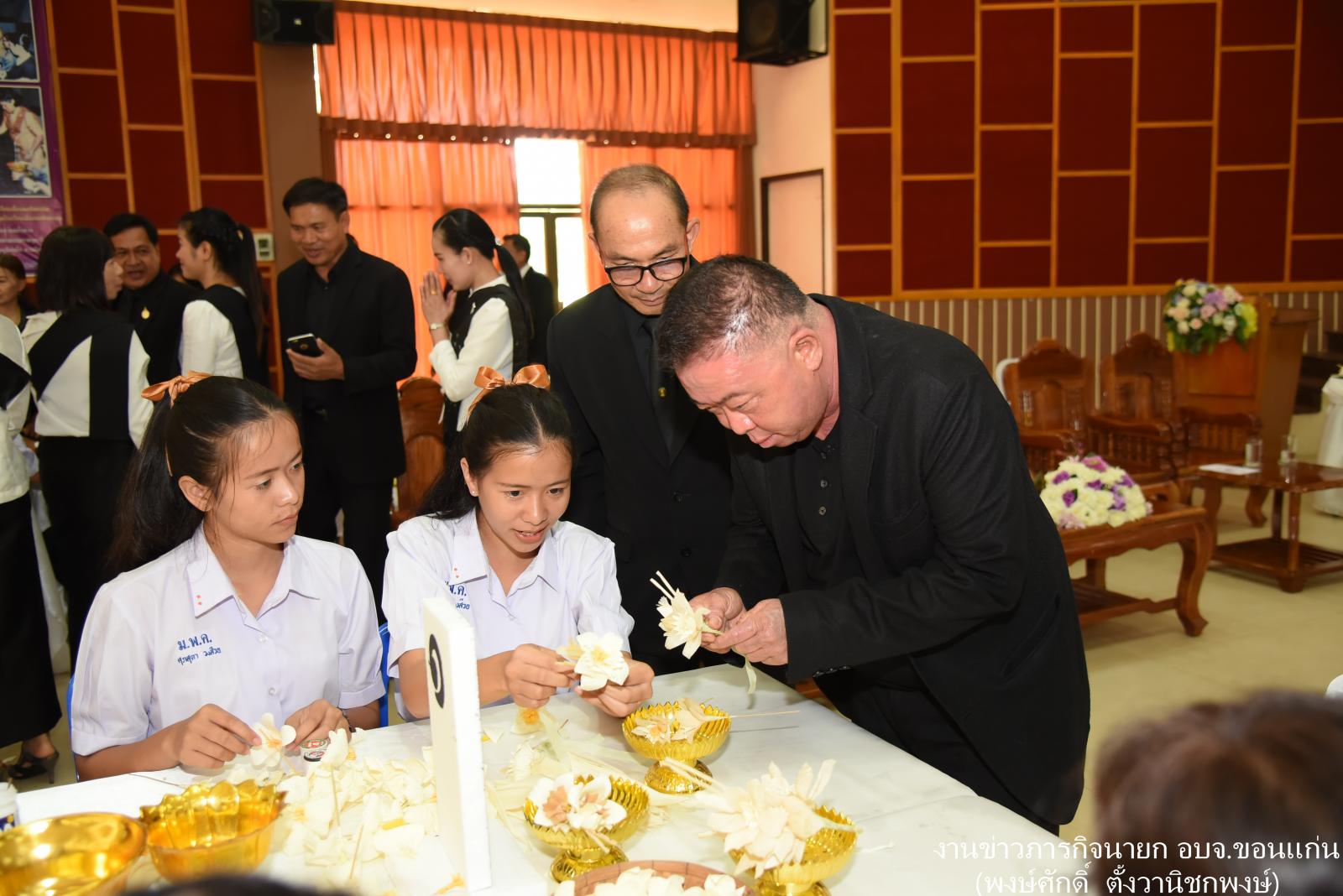 ดร.พงษ์ศักดิ์ ตั้งวานิชกพงษ์ นายกองค์การบริหารส่วนจังหวัดขอนแก่น เป็นประธานในพิธีเปิดการจัดทำดอกไม้จันทน์เพื่อใช้ในพระราชพิธีถวายพระเพลิงพระบรมศพพระบาทสมเด็จพระปรมินทรมหาภูมิพลอดุลยเดช โดยมี นายศิริวัฒน์ พินิจพานิชย์ นายอำเภอพล ดร.มงคล อติอนุวรรตน์ ผู้อำนวยการเชี่ยวชาญ ผู้อำนวยการโรงเรียนฯ พร้อมคณะครู – นักเรียน เข้าร่วมประดิษฐ์ดอกไม้จันทน์จำนวนมาก ณ โรงเรียนเมืองพลพิทยาคม อำภอพล จังหวัดขอนแก่น เมื่อ 16 มิถุนายน 2560.