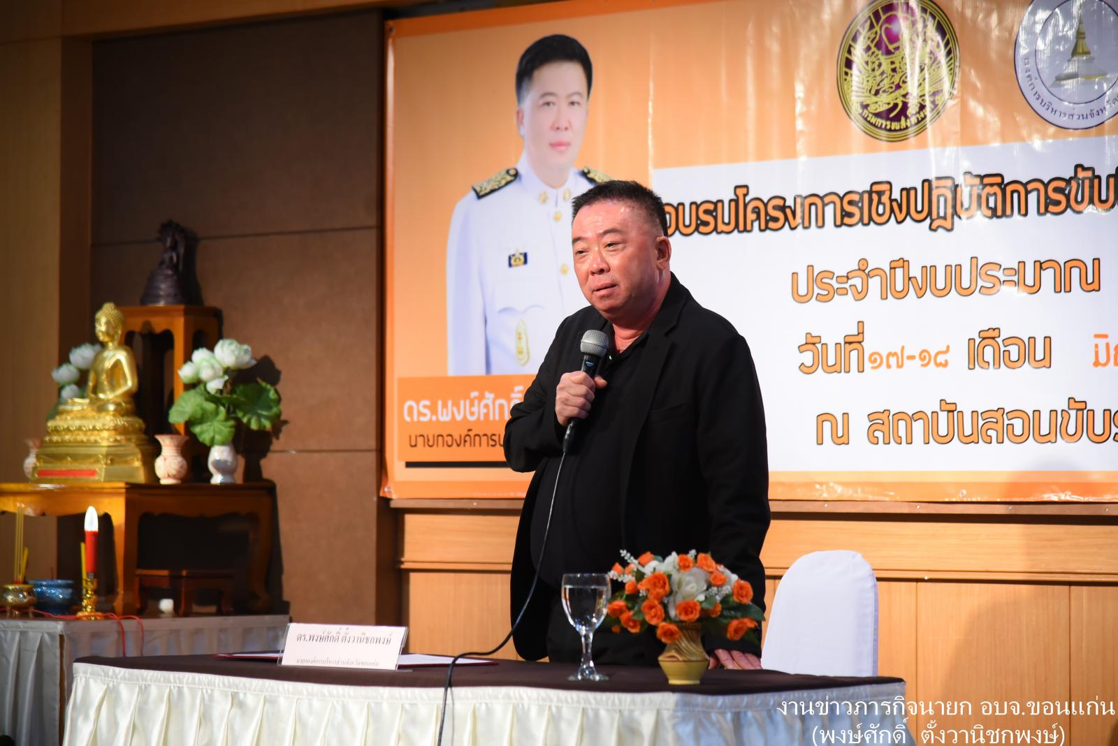 ดร.พงษ์ศักดิ์ ตั้งวานิชกพงษ์ นายกองค์การบริหารส่วนจังหวัดขอนแก่น เป็นประธานเปิดอบรม " โครงการฝึกอบรมเชิงปฎิบัติการขับขี่ปลอดภัยเสริมสร้างวินัยจราจร ประจำปีงบประมาณ 2560 รุ่นที่ 1 โดยมีผู้เข้าร่วมอบรมประกอบด้วย นักเรียน นักศึกษาและประชาชนในเขตจังหวัดขอนแก่น จำนวน 250 คน โดยมี นายวุฒิพร ศรีมังกรแก้ว ส.อบจ.ขอนแก่น เขต อ.เมือง คณะผู้บริหาร ข้าราชการ องค์การบริหารส่วนจังหวัดขอนแก่น ร่วมในพิธี ณ โรงเรียนสอนขับรถไอดี ไดร์ฟเวอร์ ถนนชัยพฤกษ์ ต.ในเมือง อ.เมือง จ.ขอนแก่น เมื่อ 17 มิถุนายน 2560