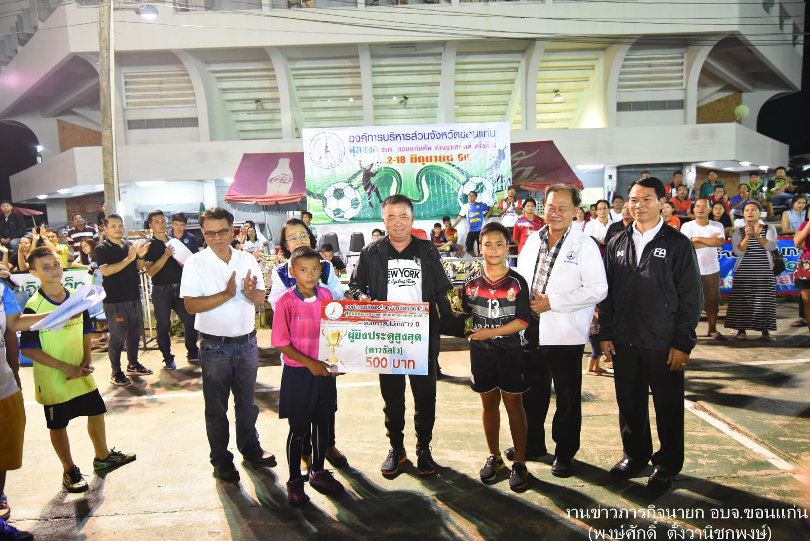 ดร.พงษ์ศักดิ์ ตั้งวานิชกพงษ์ นายกองค์การบริหารส่วนจังหวัดขอนแก่น เป็นประธานปิดและให้เกียรติมอบรางวัลให้กับผู้ชนะในการแข่งขันฟุตซอล “ อบจ.ขอนแก่น คัพ ต้านยาเสพติด ” ครั้งที่ 6 ประจำปี 2560 โดยมี นายวุฒิพร ศรีมังกรแก้ว ส.อบจ.ขอนแก่น เขต อ.เมือง นางสาวนงลักษณ์ รัตนจันทร์ รองปลัด อบจ.ขอนแก่น คณะผู้บริหาร ข้าราชการ องค์การบริหารส่วนจังหวัดขอนแก่น ร่วมในพิธี ณ สนามกีฬาองค์การบริหารส่วนจังหวัดขอนแก่น เมื่อว 18 มิถุนายน 2560