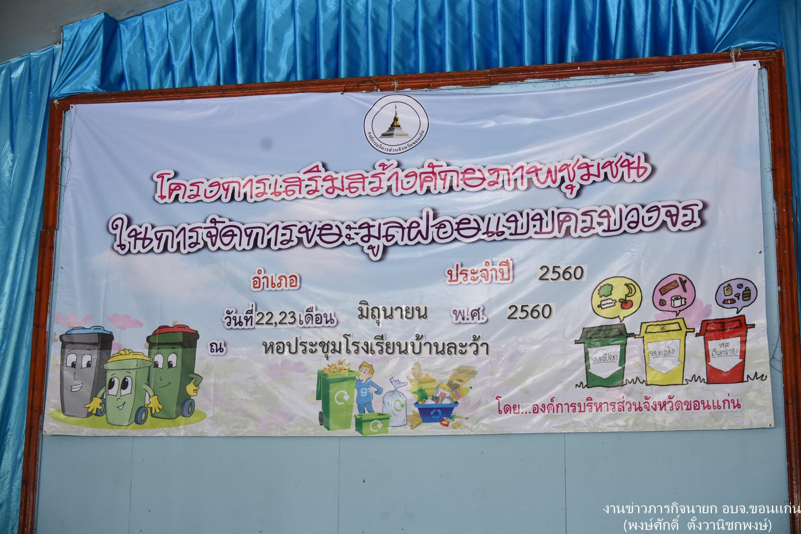 ดร.พงษ์ศักดิ์ ตั้งวานิชกพงษ์ นายกองค์การบริหารส่วนจังหวัดขอนแก่น เป็นประธานในพิธีเปิดโครงการเสริมสร้างศักยภาพชุมชนในการจัดการขยะมูลฝอย แบบครบวงจร อำเภอบ้านไผ่ ประจำปี 2560 โดยมี นายเดชคำรณ สิงคลีบุตร ส.อบจ.ขอนแก่น เขต อ.บ้านไผ่ ร่วมในพิธี เมื่อวันที่ 22 มิถุนายน 2560 ณ หอประชุมโรงเรียนบ้านละว้า ตำบลเมืองเพีย อำเภอบ้านไผ่ จังหวัดขอนแก่น