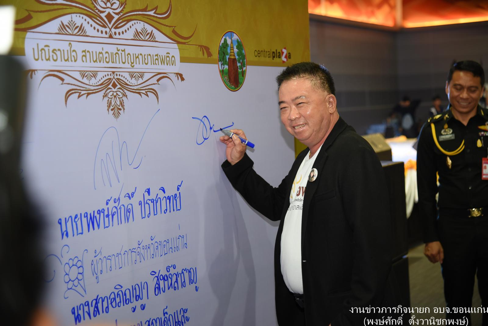 ดร.พงษ์ศักดิ์ ตั้งวานิชกพงษ์ นายกองค์การบริหารส่วนจังหวัดขอนแก่น ร่วมพิธีเปิดมหกรรม “รวมพลังประชารัฐขอนแก่น ทำดีเพื่อพ่อ สานต่อแก้ปัญหายาเสพติด” โดยศูนย์อำนวยการป้องกันและแก้ไขปัญหายาเสพติด จังหวัดขอนแก่น ได้จัดกิจกรรมรณรงค์นี้ขึ้นเนื่องจากวันที่ 26 มิถุนายน ของทุกปี เป็นวันต่อต้านยาเสพติดโลก โดยได้รับเกียรติจาก นายพงษ์ศักดิ์ ปรีชาวิทย์ ผู้ว่าราชการจังหวัดขอนแก่น ประธานพิธี ณ ขอนแก่นฮอลล์ ชั้น 5 ศูนย์การค้าเซ็นทรัลพลาซ่า ขอนแก่น เมื่อ 26 มิถุนายน 2560