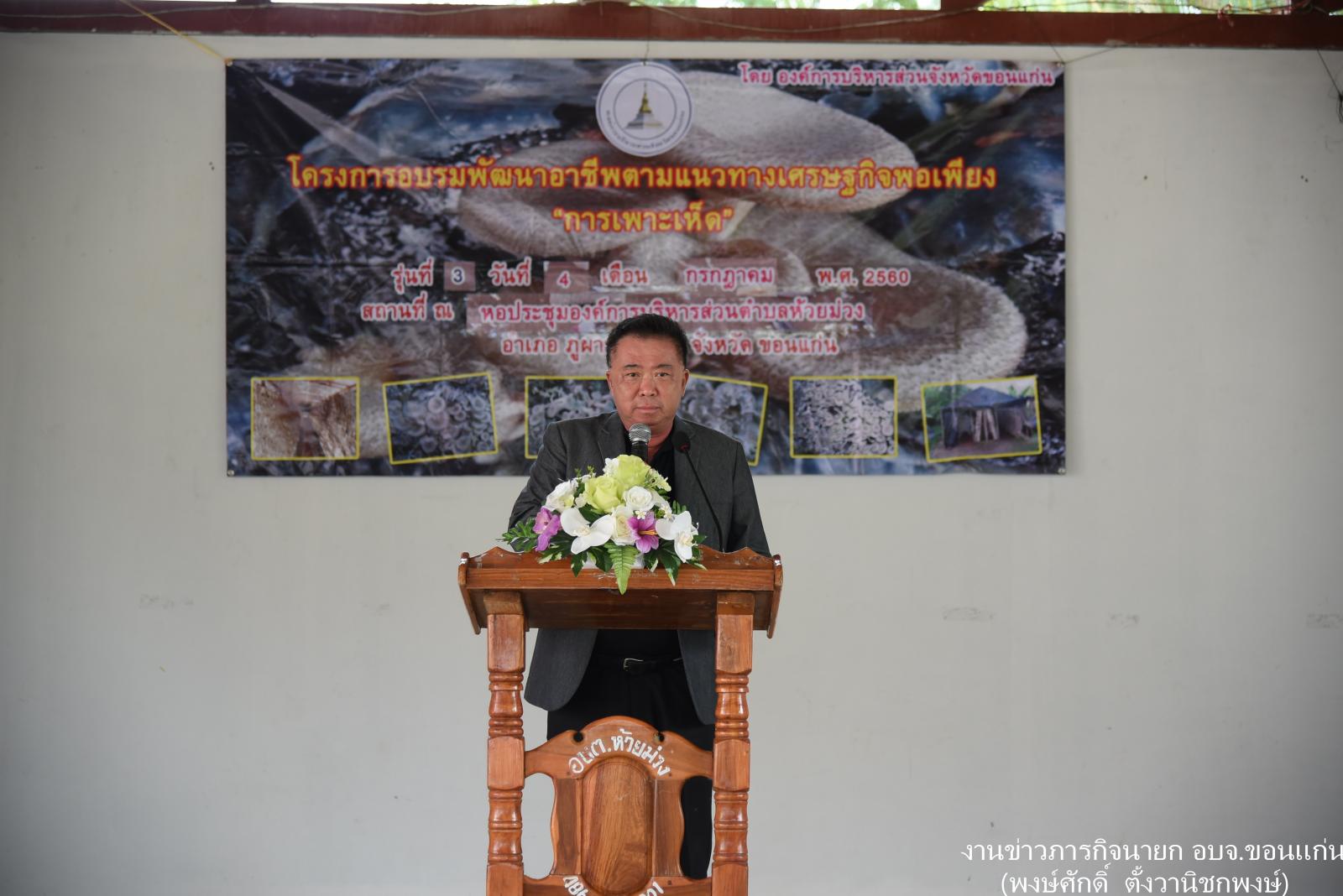 ดร.พงษ์ศักดิ์ ตั้งวานิชกพงษ์ นายกองค์การบริหารส่วนจังหวัดขอนแก่น เป็นประธานเปิดโครงการอบรมพัฒนาอาชีพตามแนวทางเศรษฐกิจพอเพียง“การเพาะเห็ด” อำเภอภูผาม่าน จังหวัดขอนแก่น รุ่นที่ 3 โดยมี นายประสิทธิ์ ทองแท่งไทย ส.อบจ.ขอนแก่น เขต อ.ภูผาม่าน ร่วมในพิธี เกษตรกรผู้ที่สนใจในพื้นที่ตำบลห้วยม่วง อำเภอภูผาม่าน จังหวัดขอนแก่น จำนวน 200 คน ร่วมในโครงการ เมื่อ 4 กรกฎาคม 2560 ณ หอประชุมองค์การบริหารส่วนตำบลห้วยม่วง อำเภอภูผาม่าน จังหวัดขอนแก่น