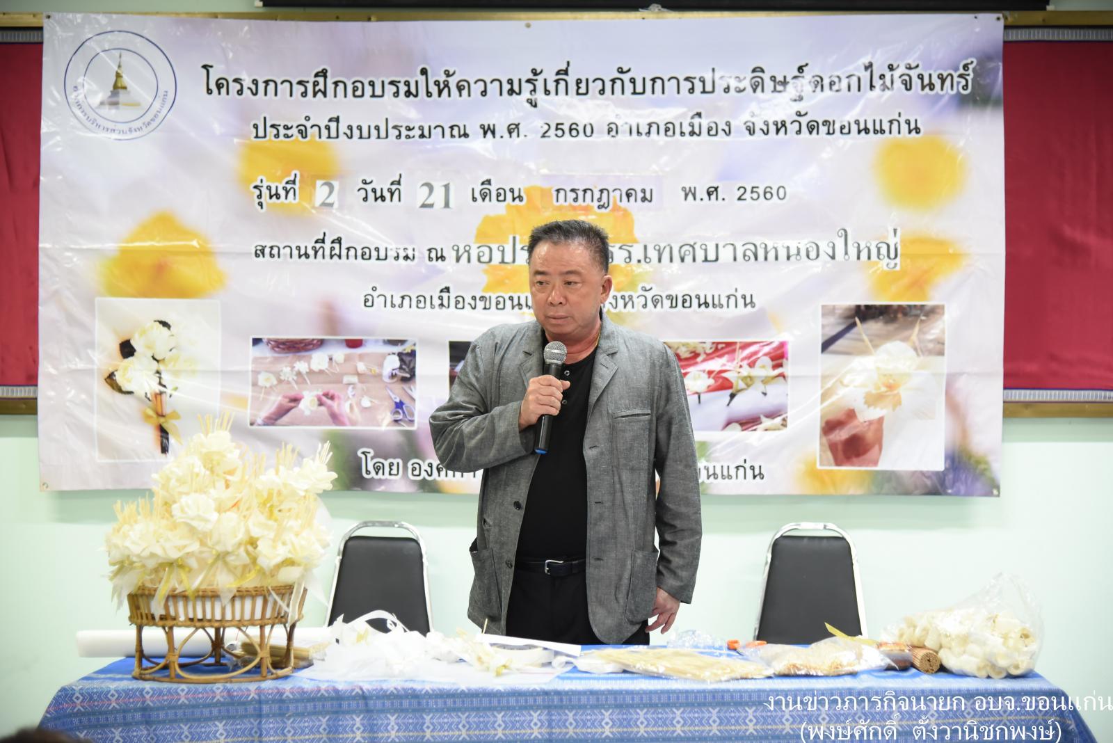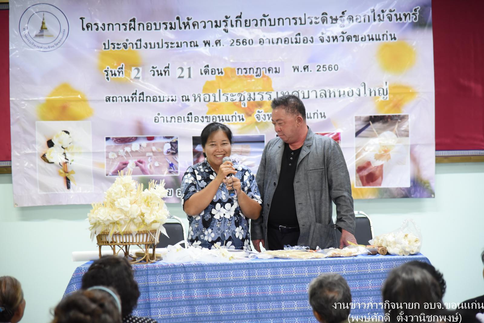 ดร.พงษ์ศักดิ์ ตั้งวานิชกพงษ์ นายกองค์การบริหารส่วนจังหวัดขอนแก่น เป็นประธานในพิธีเปิดโครงการฝึกอบรมให้ความรู้เกี่ยวกับการประดิษฐ์ดอกไม้จันทน์ ประจำปีงบประมาณ พ.ศ.2560 อำเภอเมืองขอนแก่น โดยมี นายวุฒิพร ศรีมังกรแก้ว ส.อบจ.ขอนแก่น เขต อ.เมือง พร้อมคณะให้การต้อนรับอย่างอบอุ่น เมื่อ 21 กรกฎาคม 2560 ณ หอประชุมโรงเรียนเทศบาลหนองใหญ่ อำเภอเมือง จังหวัดขอนแก่น