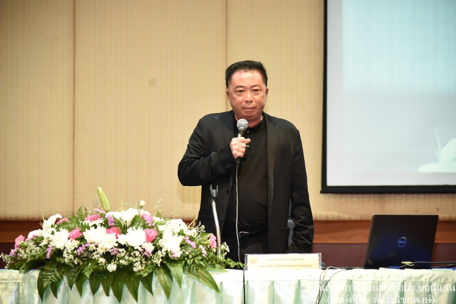 ดร.พงษ์ศักดิ์ ตั้งวานิชกพงษ์ นายกองค์การบริหารส่วนจังหวัดขอนแก่น กล่าวต้อนรับและพบปะกับนักศึกษาใหม่ คณะนิติศาสตร์ มหาวิทยาลัยขอนแก่น ในงานปฐมนิเทศนักศึกษาใหม่ ประจำปีการศึกษา 2560 เมื่อ 5 สิงหาคม 2560 ณ หอประชุมองค์การบริหารส่วนจังหวัดขอนแก่น