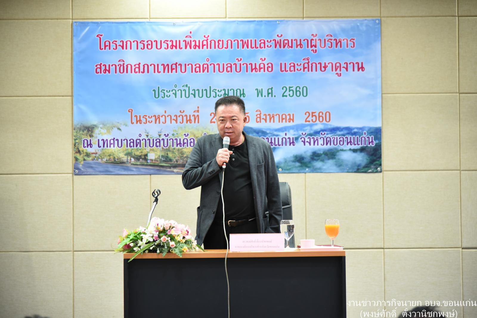 เป็นประธานเปิดโครงการเพิ่มศักยภาพและพัฒนาผู้บริหารสมาชิกสภาเทศบาลตำบลบ้านค้อ และศึกษาดูงาน ประจำปีงบประมาณ 2560