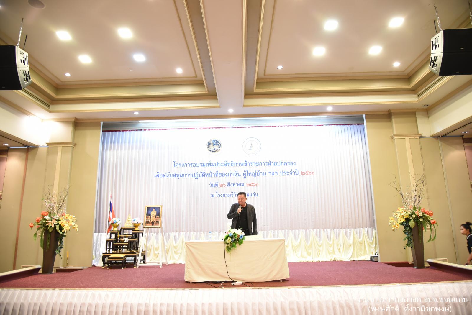 เพื่อสนับสุนการปฏิบัติหน้าที่ของกำนัน ผู้ใหญ่บ้าน ฯลฯ ประจำปี 2560 เมื่อ 26 สิงหาคม 2560 ณ ห้องแก่นนครา โรงแรมวีวีช อำเภอเมืองขอนแก่น จังหวัดขอนแก่น
