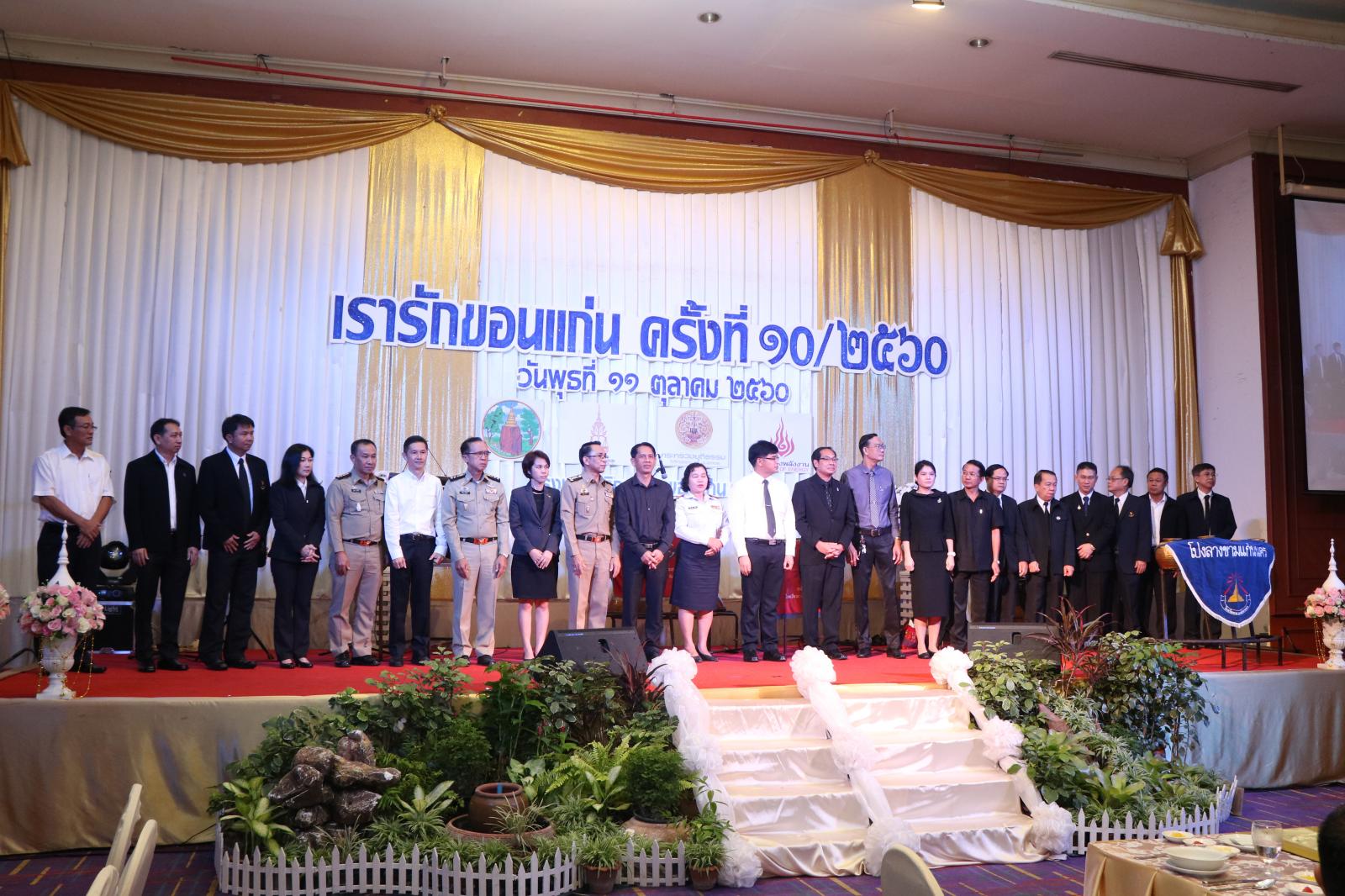 เมื่อวันที่ 11 ตุลาคม 2560 นายก อบจ.ขอนแก่น ดร.พงษ์ศักดิ์ ตั้งวานิชกพงษ์ มอบหมายให้ รองปลัด อบจ.ขอนแก่น นายธาดา พรหมสาขา ณ สกลนคร พร้อมด้วย ผอ.กองการเจ้าหน้าที่ นายสุวนัย ภูมาศ และผอ.กองพัสดุและทรัพย์สิน นางจิตลัดดา สถิรธนากร ร่วมกิจกรรมเรารักขอนแก่น ครั้งที่ 10/2560 ณ โรงแรมเจริญธานี อ.เมืองขอนแก่น จ.ขอนแก่น