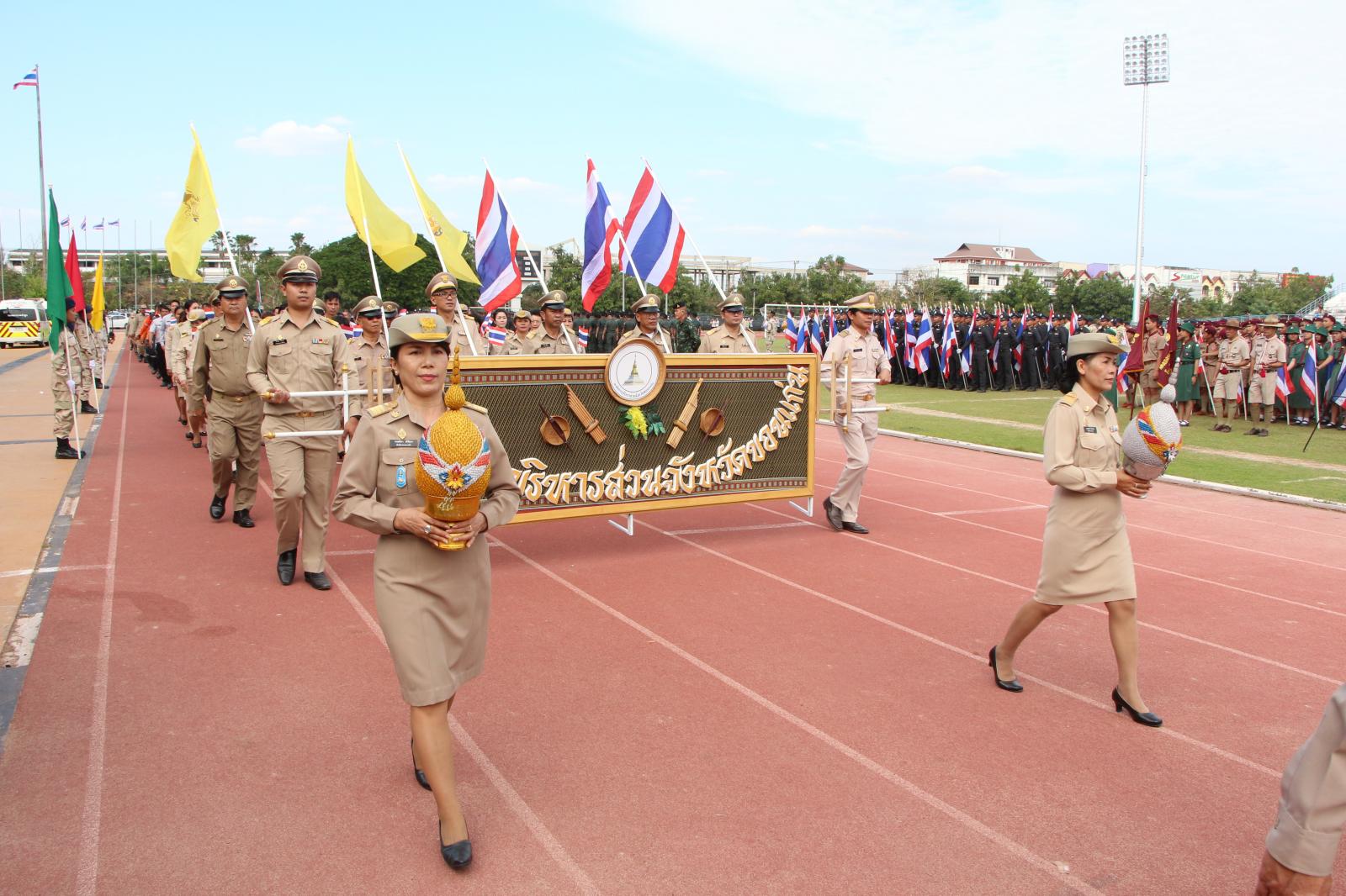 ร่วมพิธีสวนสนาม เนื่องในวันชาติไทย รวมใจพลังมวลชนคนขอนแก่น จังหวัดขอนแก่น