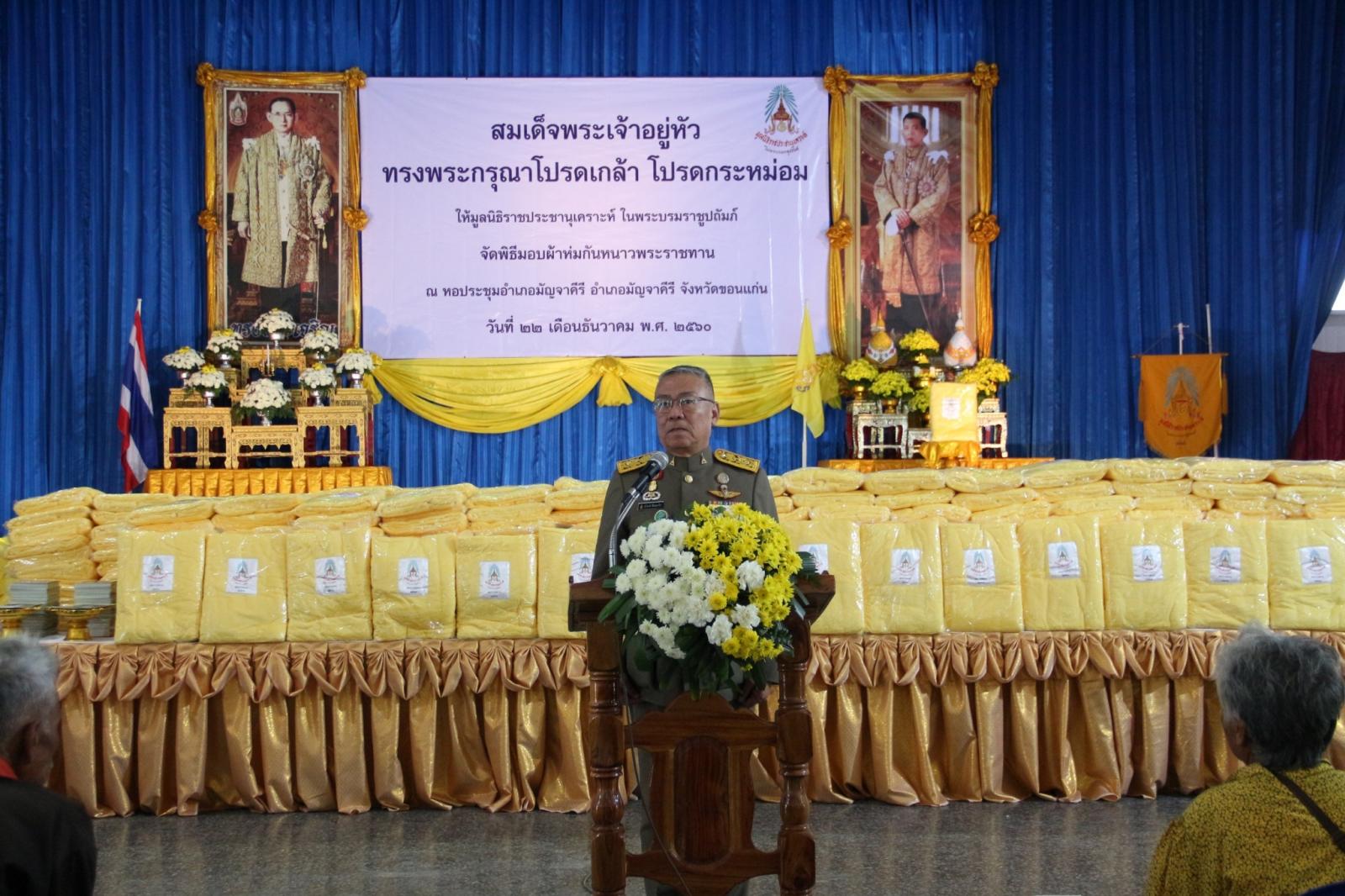 ในวันที่ 22 ธันวาคม 2560 นายก อบจ.ขอนแก่น ดร.พงษ์ศักดิ์ ตั้งวานิชกพงษ์ มอบหมายให้ รองประธานสภา อบจ.ขอนแก่น คนที่ 2 นายมีสวัสดิ์ ชมชัยภูมิ ,รองปลัด อบจ.ขอนแก่น นายประสิทธิ์ อุดมธนะธีระ ร่วมพิธีมอบผ้าห่มกันหนาวพระราชทาน โดย สมเด็จพระเจ้าอยู่หัวมหาวชิราลงกรณ บดินทรเทพยวรางกูร ทรงพระกรุณาโปรดเกล้า โปรดกระหม่อมฯ ให้มูลนิธิราชประชานุเคราะห์ ในพระบรมราชูปถัมภ์ โดยมี พล.ต.สุริยนต์ เฉียงตะวัน ผู้แทนพระองค์ มอบผ้าห่มกันหนาวพระราชทานมอบแก่ราษฎรผู้ประสบภัยหนาว จำนวน 4 อำเภอ ประกอบด้วย อ.มัญจาคีรี อ.โคกโพธิ์ไชย ,อ.ชุมแพ ,อ.ภูผาม่าน จำนวน 3,000 ผืน โดยมี ผู้ว่าราชการจังหวัดขอนแก่น ดร.สมศักดิ์ จังตระกุล ผู้แทนจากหน่วยงานภาครัฐและเอกชน ร่วมมอบผ้าห่มกันหนาวพระราชทาน ณ อ.มัญจาคีรี ,อ.โคกโพธิ์ชัย ,อ.ชุมแพ ,อ.ภูผาม่าน จังหวัดขอนแก่น