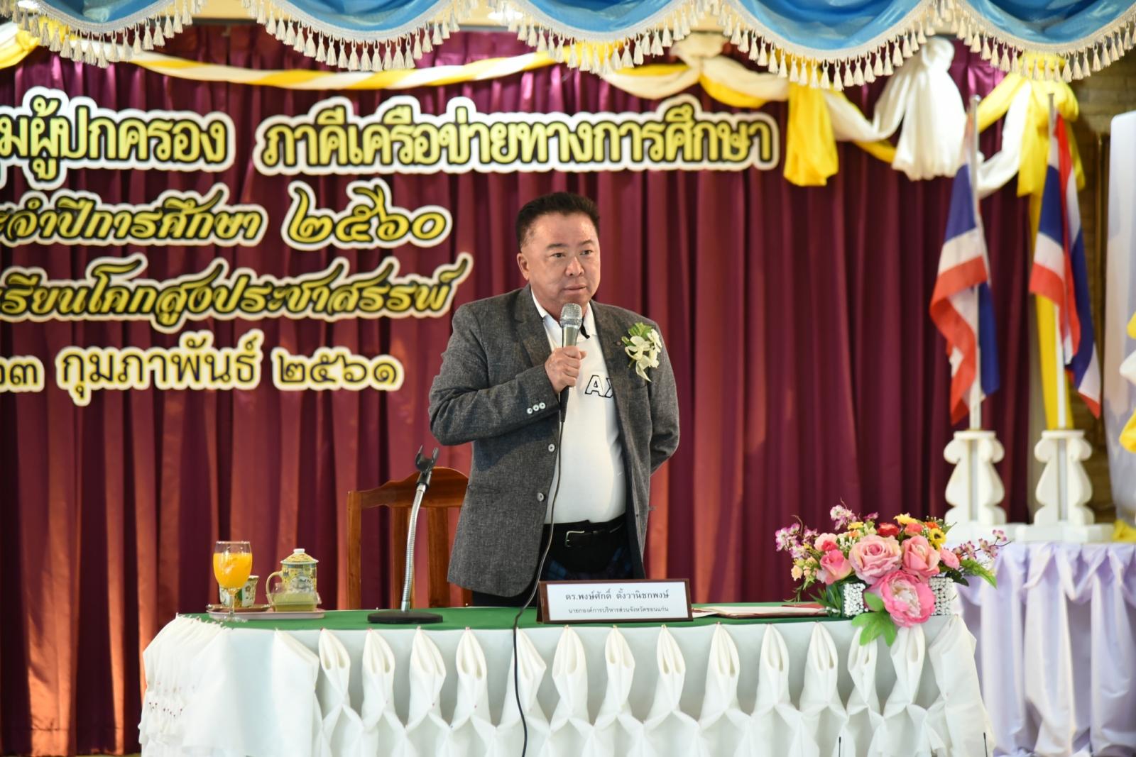เป็นประธานเปิดประชุมผู้ปกครอง ภาคีเครือข่ายทางการศึกษา และกิจกรรมเปิดบ้านวิชาการ( OPEN HOUSE ) ในงานดังกล่าว นายก อบจ.ขอนแก่น ได้ให้เกียรติมอบประกาศเกียรติคุณให้แก่หน่วยงานที่ให้การสนับสนุนและเยี่ยมชมผลงานของนักเรียนเพื่อเป็นกำลังใจต่อไป โดยมี นายมนต์ชัย ศรีวิไลลักษณ์ รองประธานสภาองค์การบริหารส่วนจังหวัดขอนแก่น นางวิบูลรัตน์ บุษราคัม ผู้อำนวยการสถานศึกษา นายประเวศ เทศเรียน ผู้อำนวยการสำนักการศึกษา ศาสนาและวัฒนธรรม คณะครู ผู้ปกครอง นักเรียนต้อนรับอย่างอบอุ่น ณ โรงเรียนโคกสูงประชาสรรพ์ อำเภอน้ำพอง จังหวัดขอนแก่น เมื่อวันที่ 23 กุมภาพันธ์ 2561